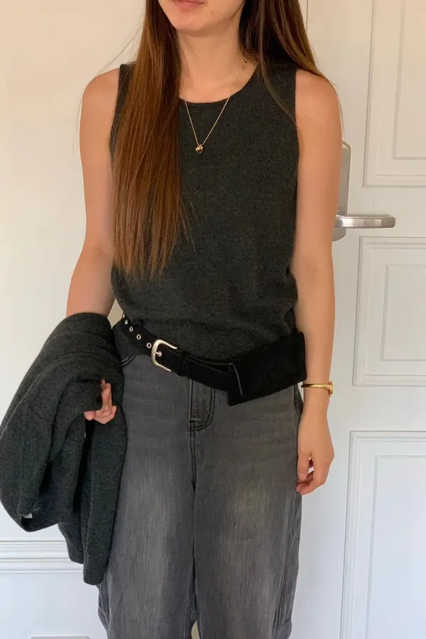 A87 1002氣質歐膩家寬肩帶圓領羊毛100%針織背心