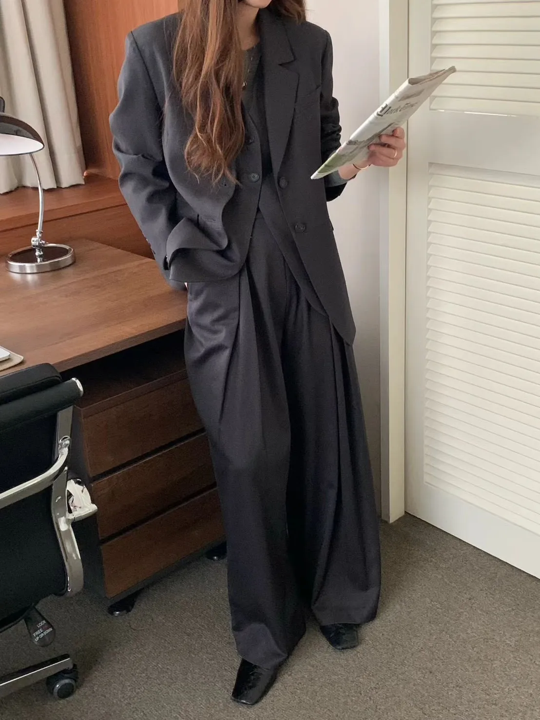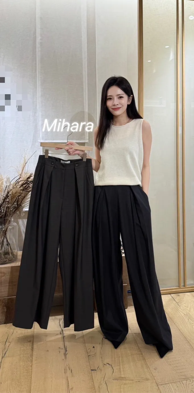 A88 1002氣質歐膩家立體打褶西裝寬褲
