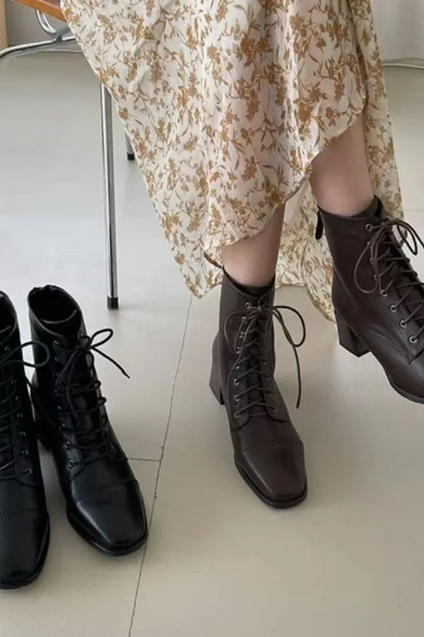 E147日系綁帶後拉鏈軍靴5.5cm(225-250)2色
