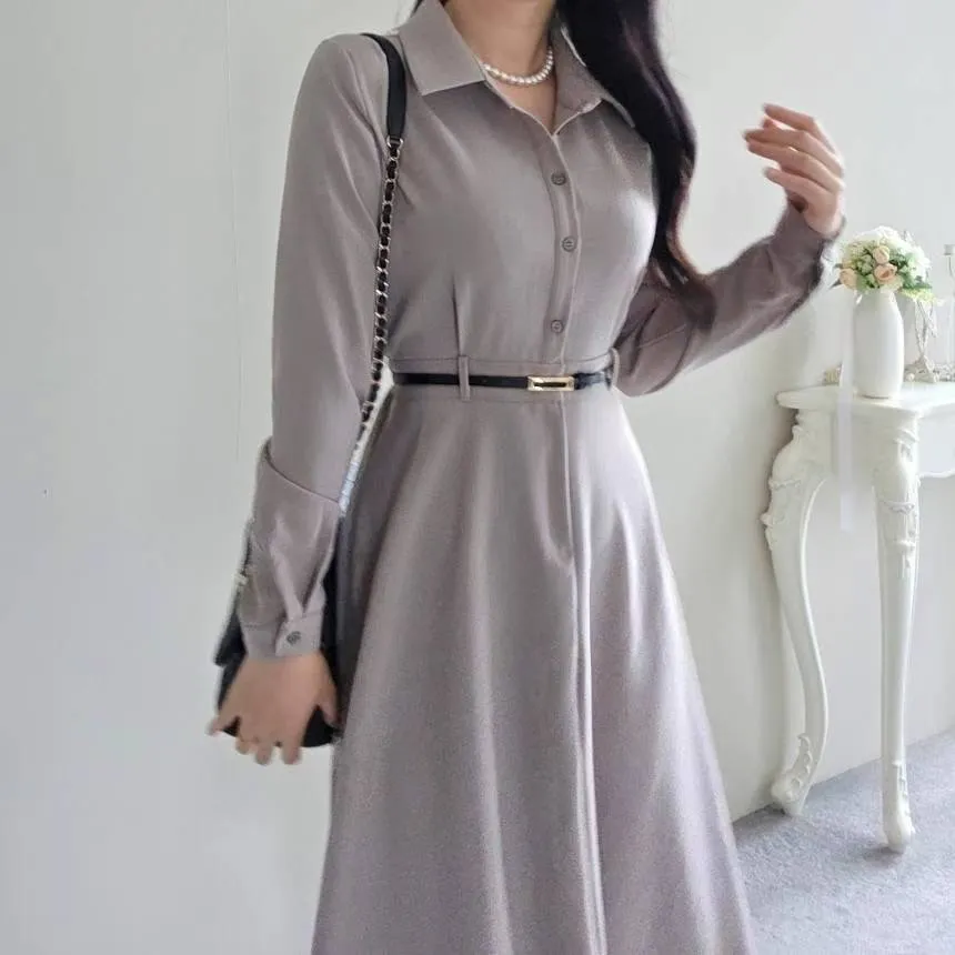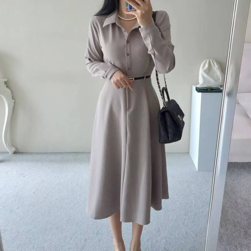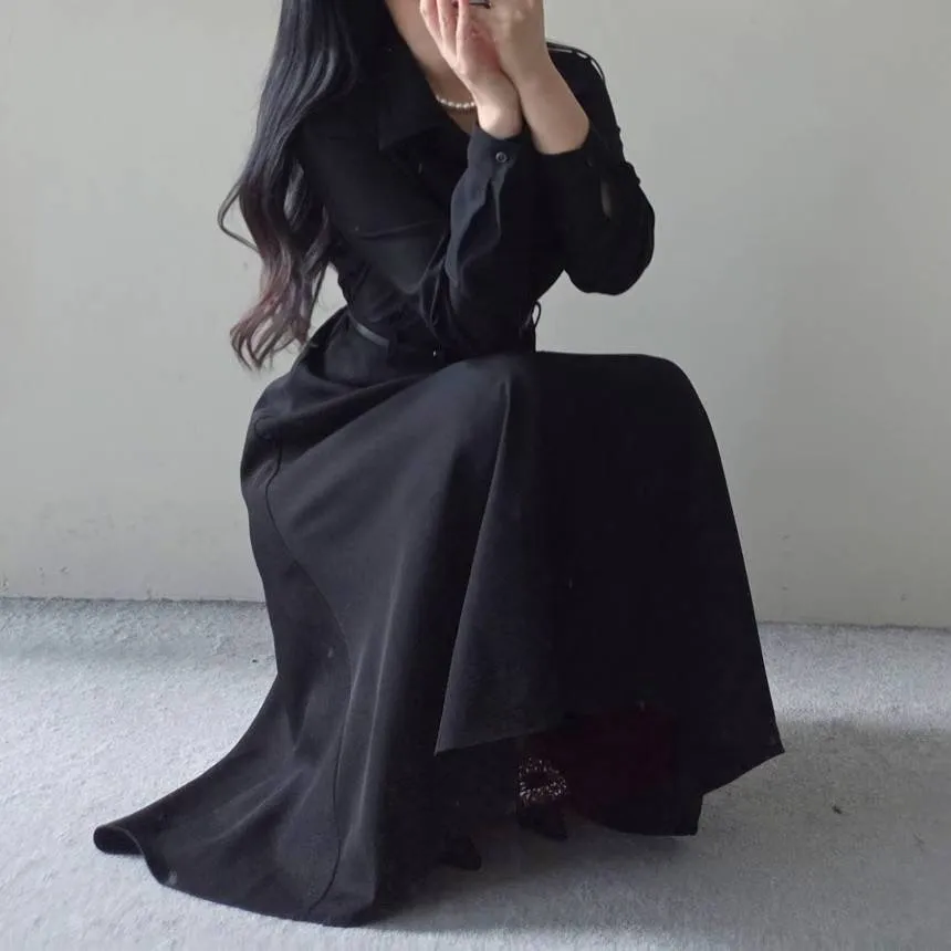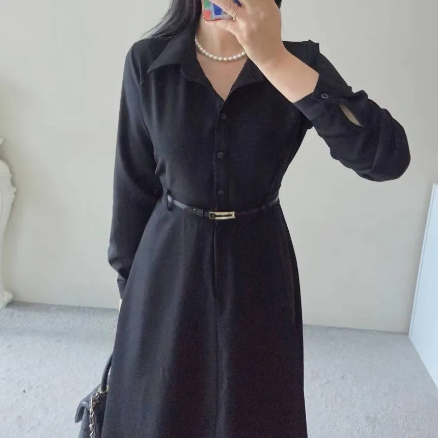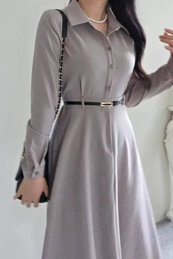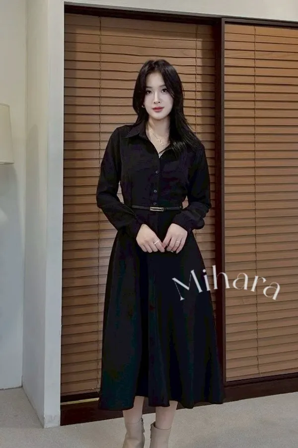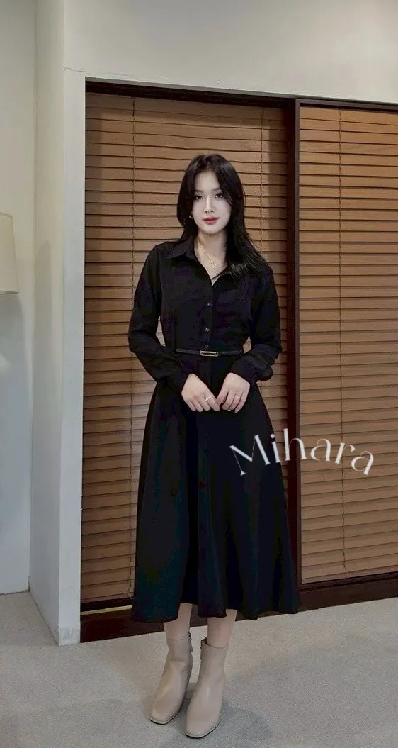 A22 1005女伶V領側排釦洋裝2色
