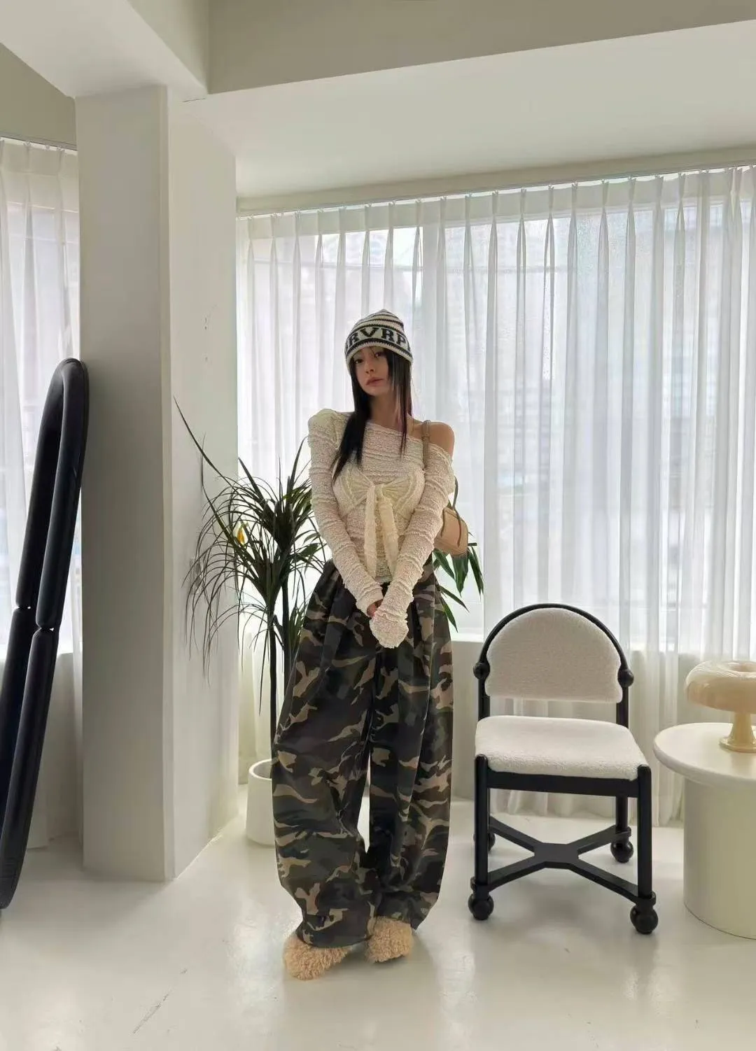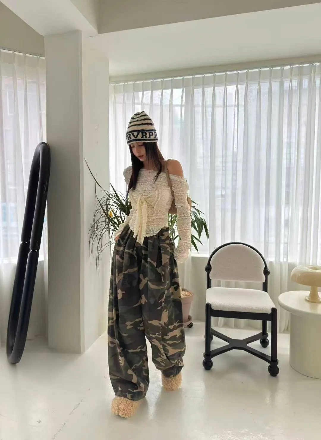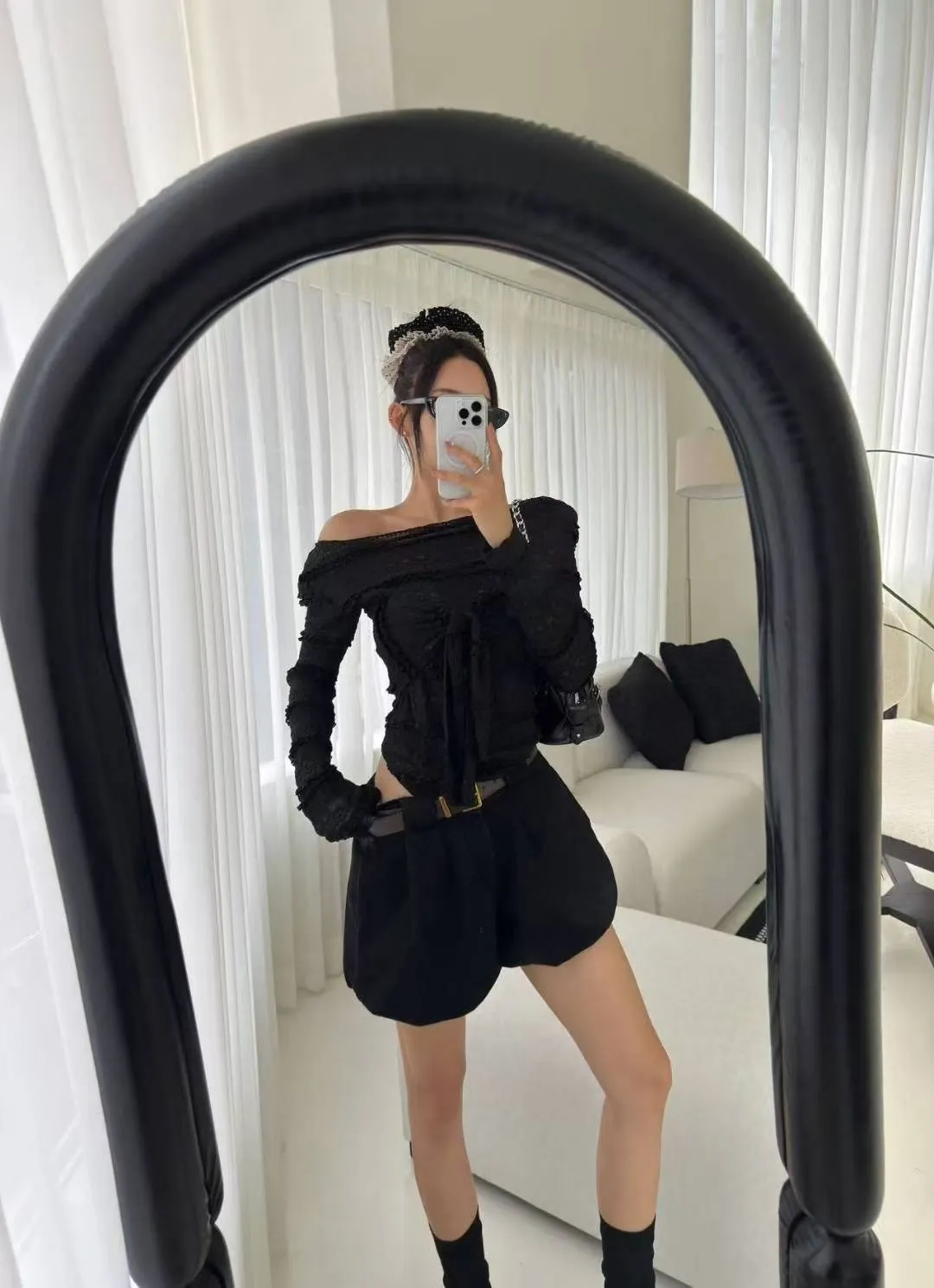 A1 1008韓妞網紅風假兩件式綁帶一字領蕾絲上衣