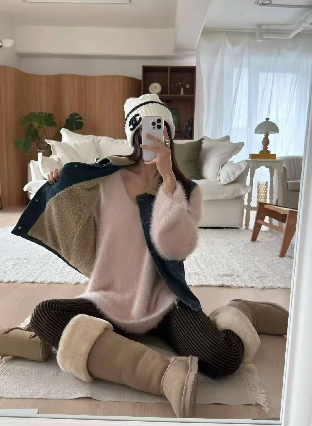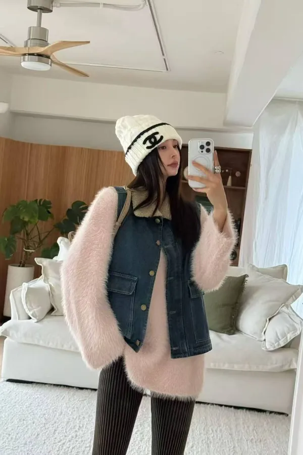 A12 1008韓妞網紅風QQ毛翻領排釦牛仔背心