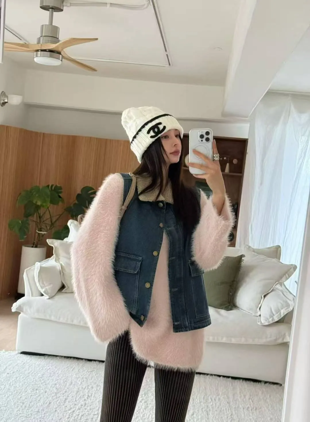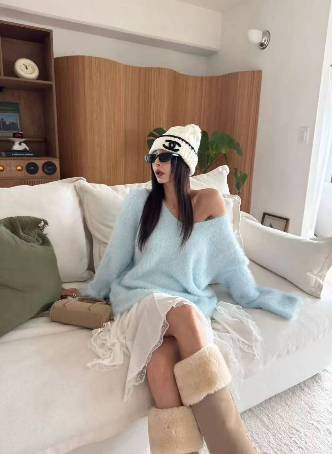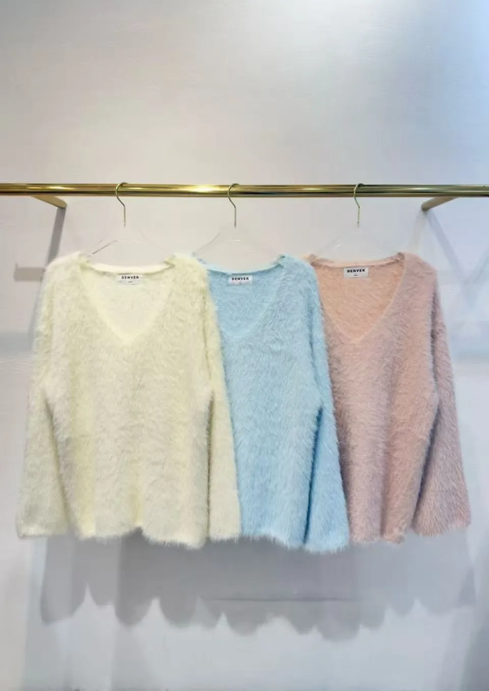A13 1008韓妞網紅風V領可拉斜領毛毛上衣