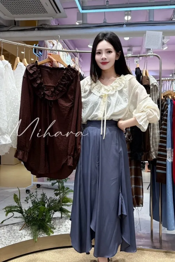 A32 1008浪漫家綁帶排釦雙層荷葉領片V領上衣
