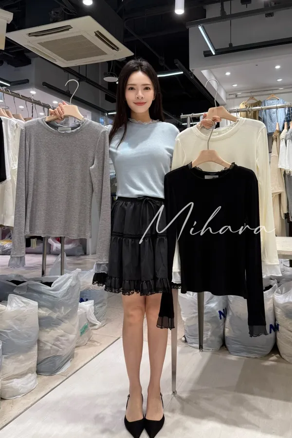 A46 1009甜甜CP蕾絲場拼接蕾絲滾邊圓領上衣