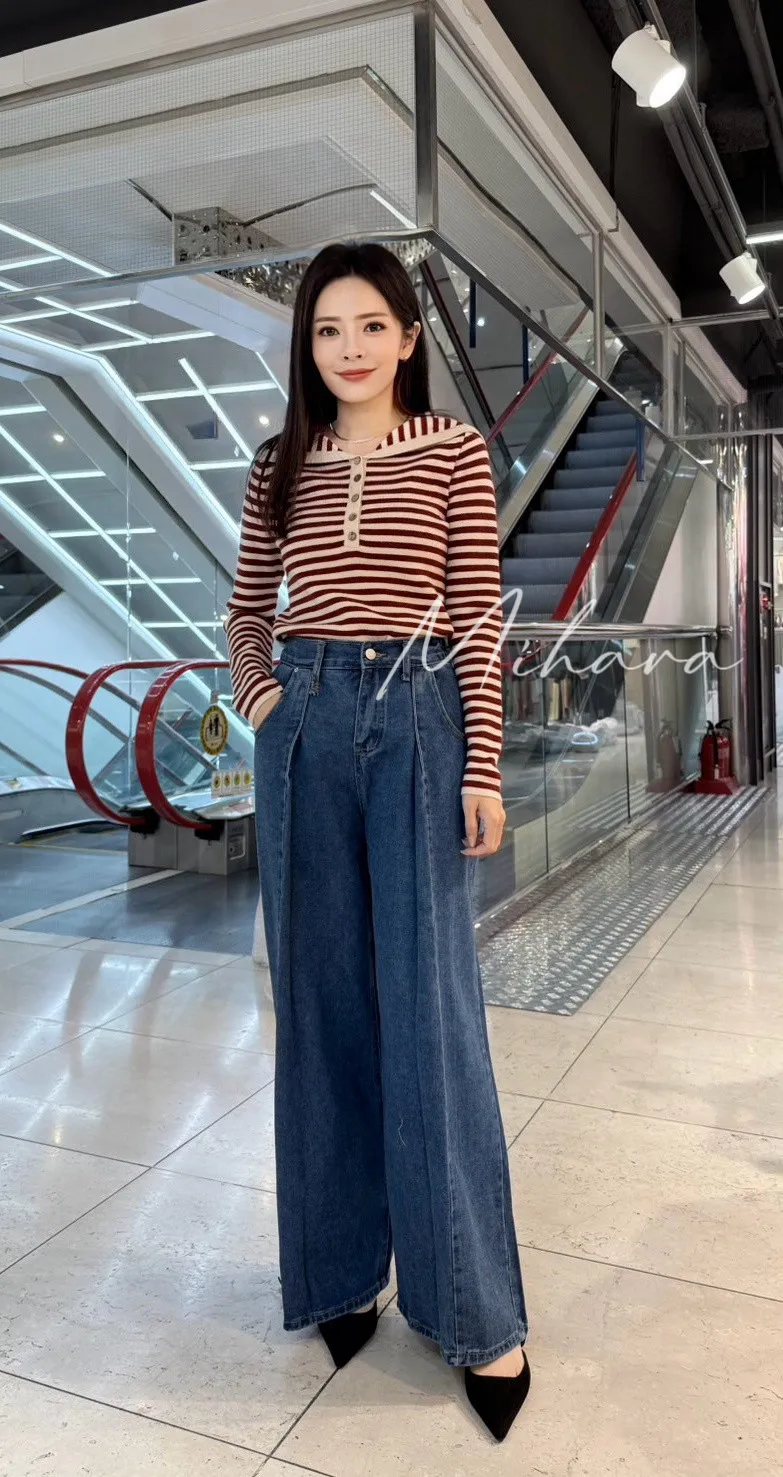 A53 1009CP甜甜家立體打褶直筒牛仔褲(S/M/L)