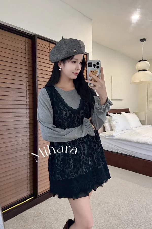 A5 1012真兩件式蕾絲罩衫+T恤(SET)