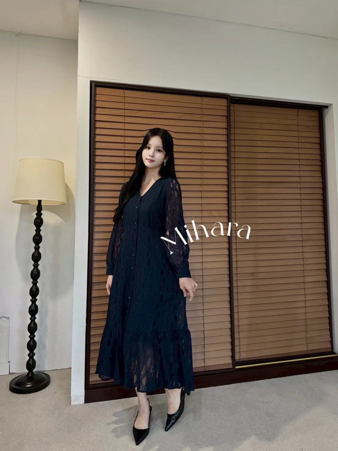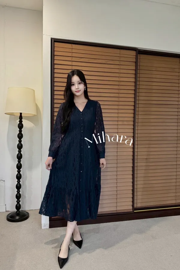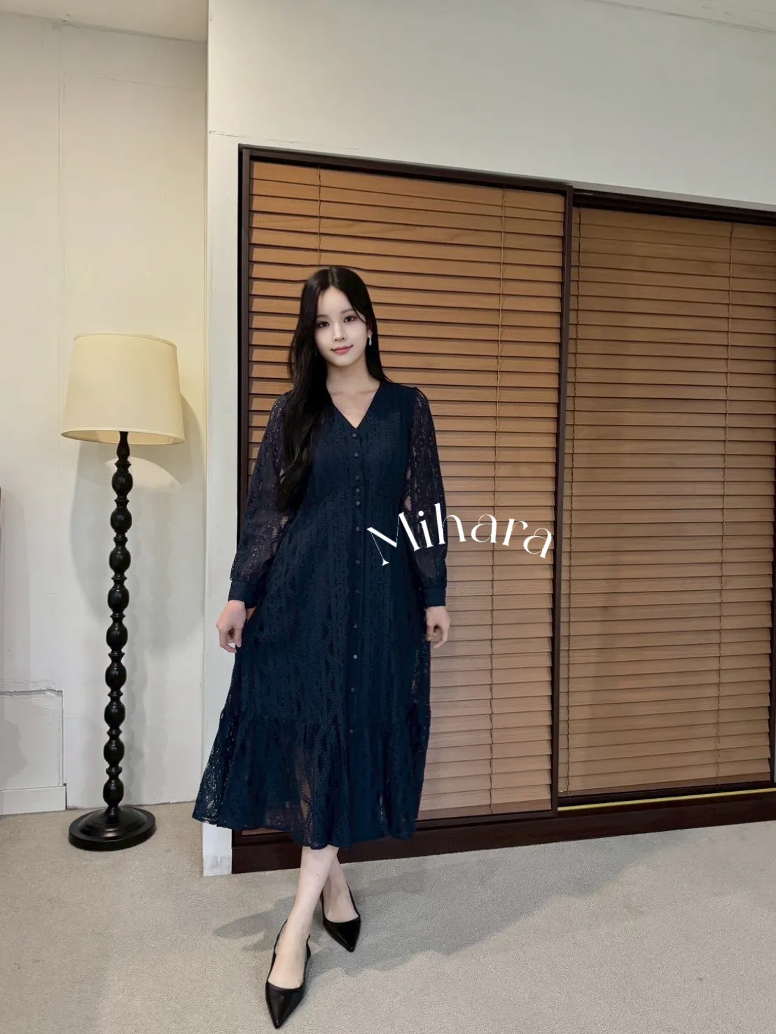 A19 1012高級蕾絲開釦綁帶洋裝3色