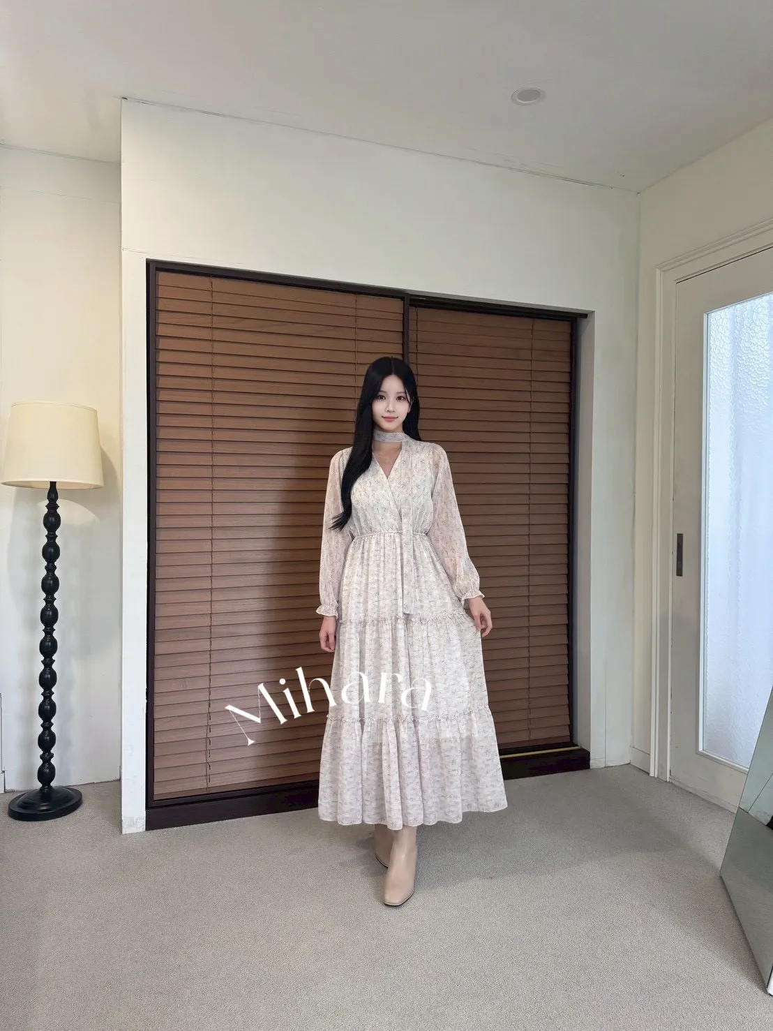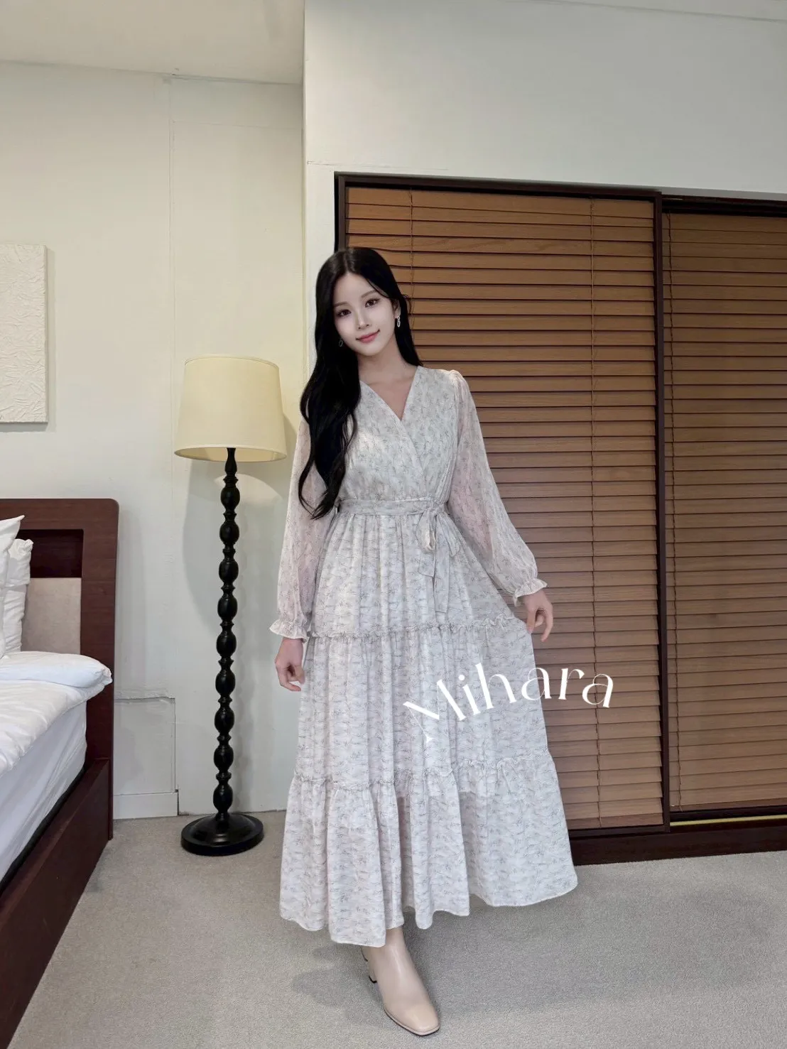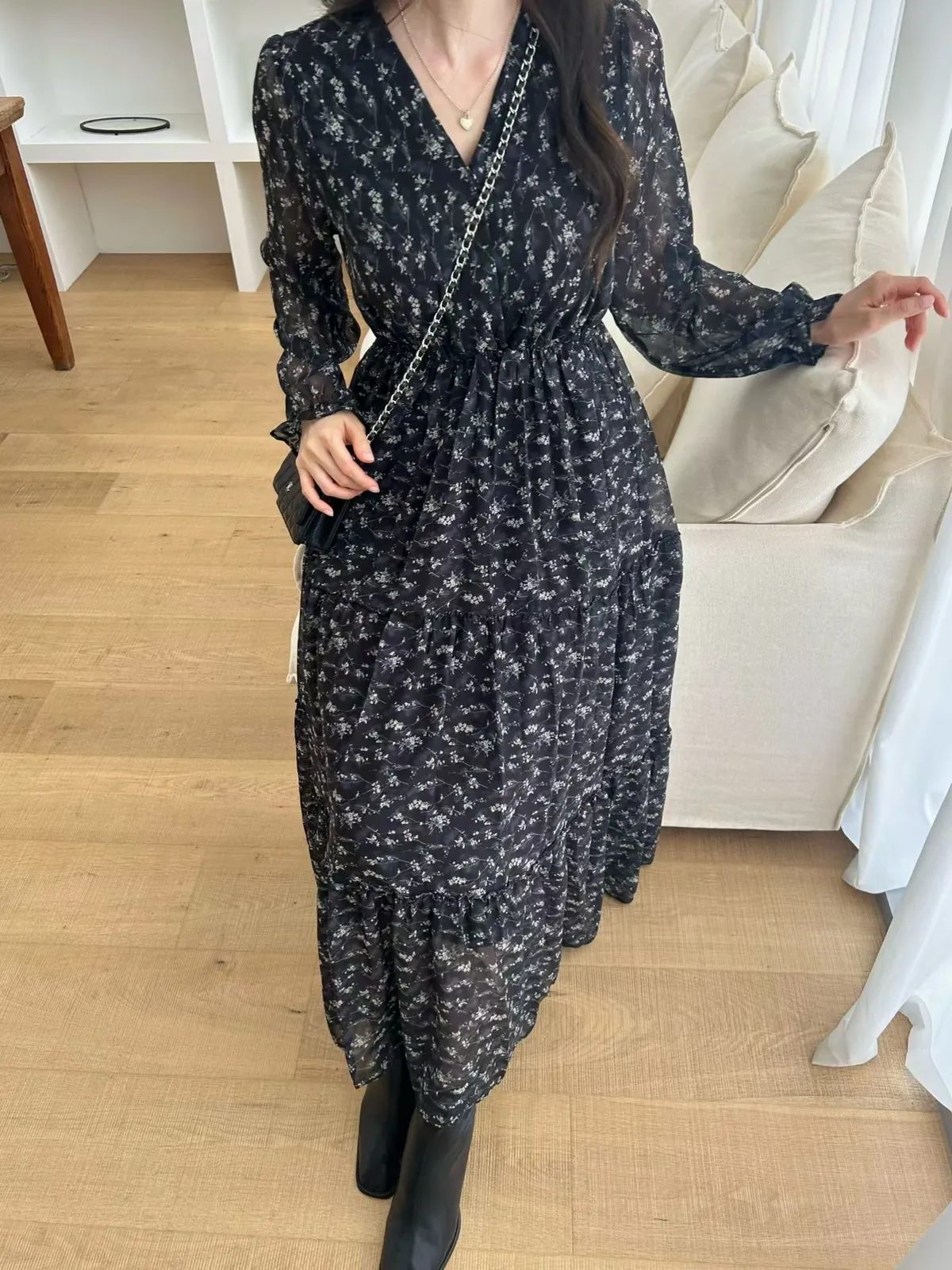 A18 1012V領碎花蛋糕洋裝3色