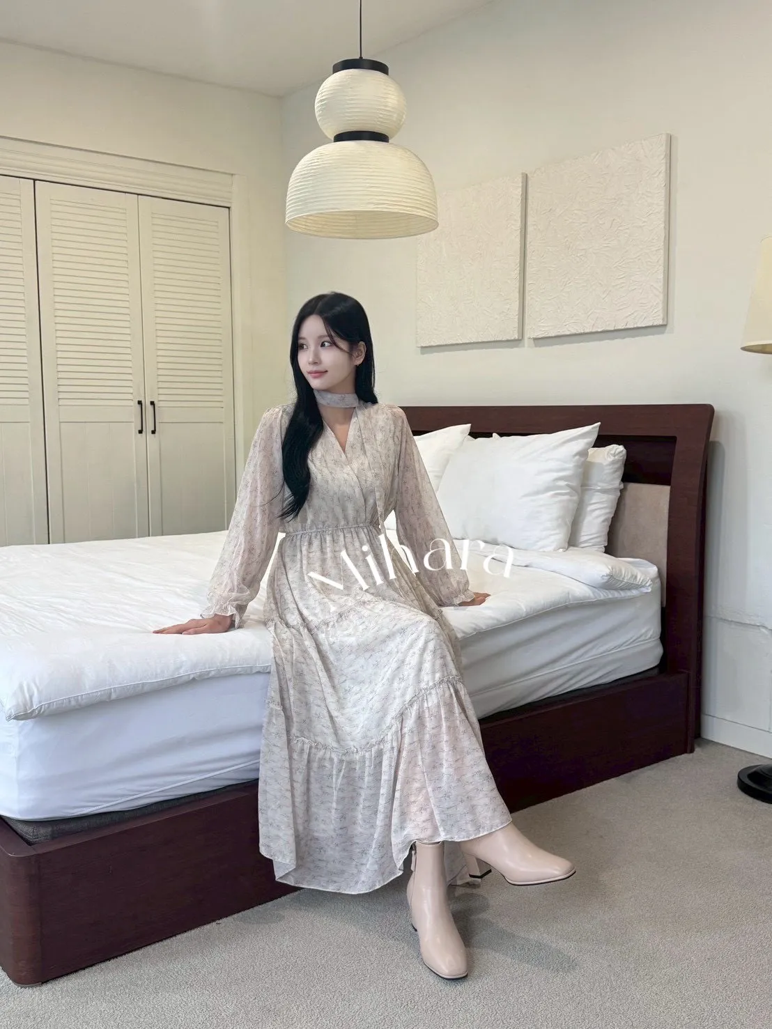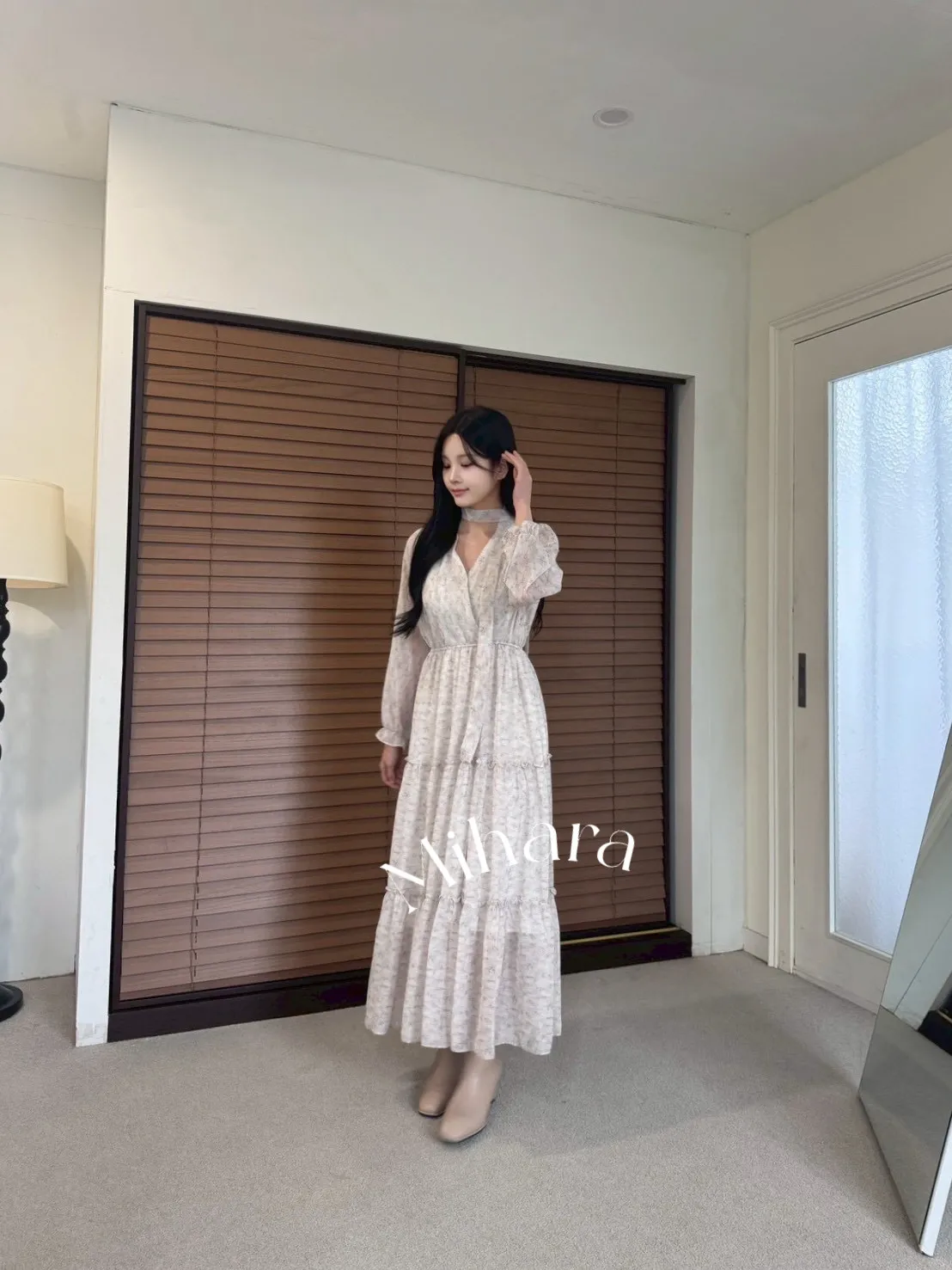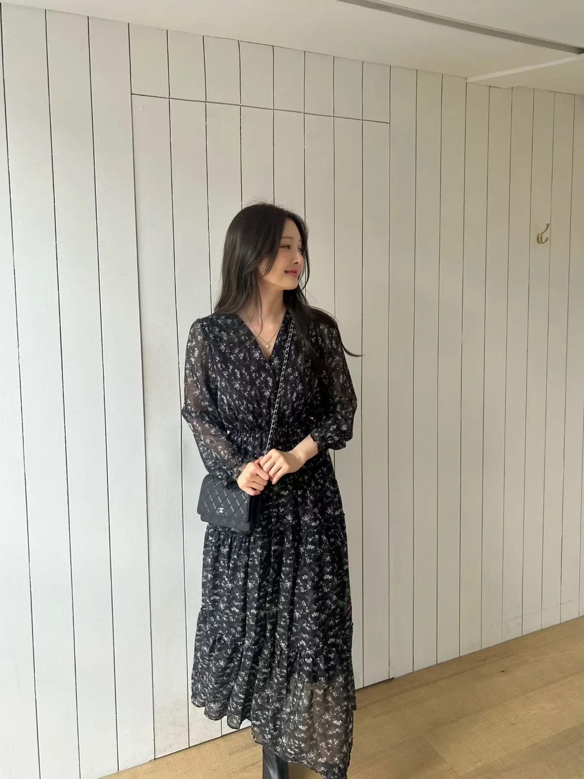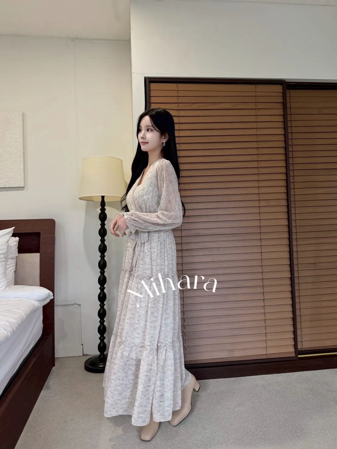 A18 1012V領碎花蛋糕洋裝3色