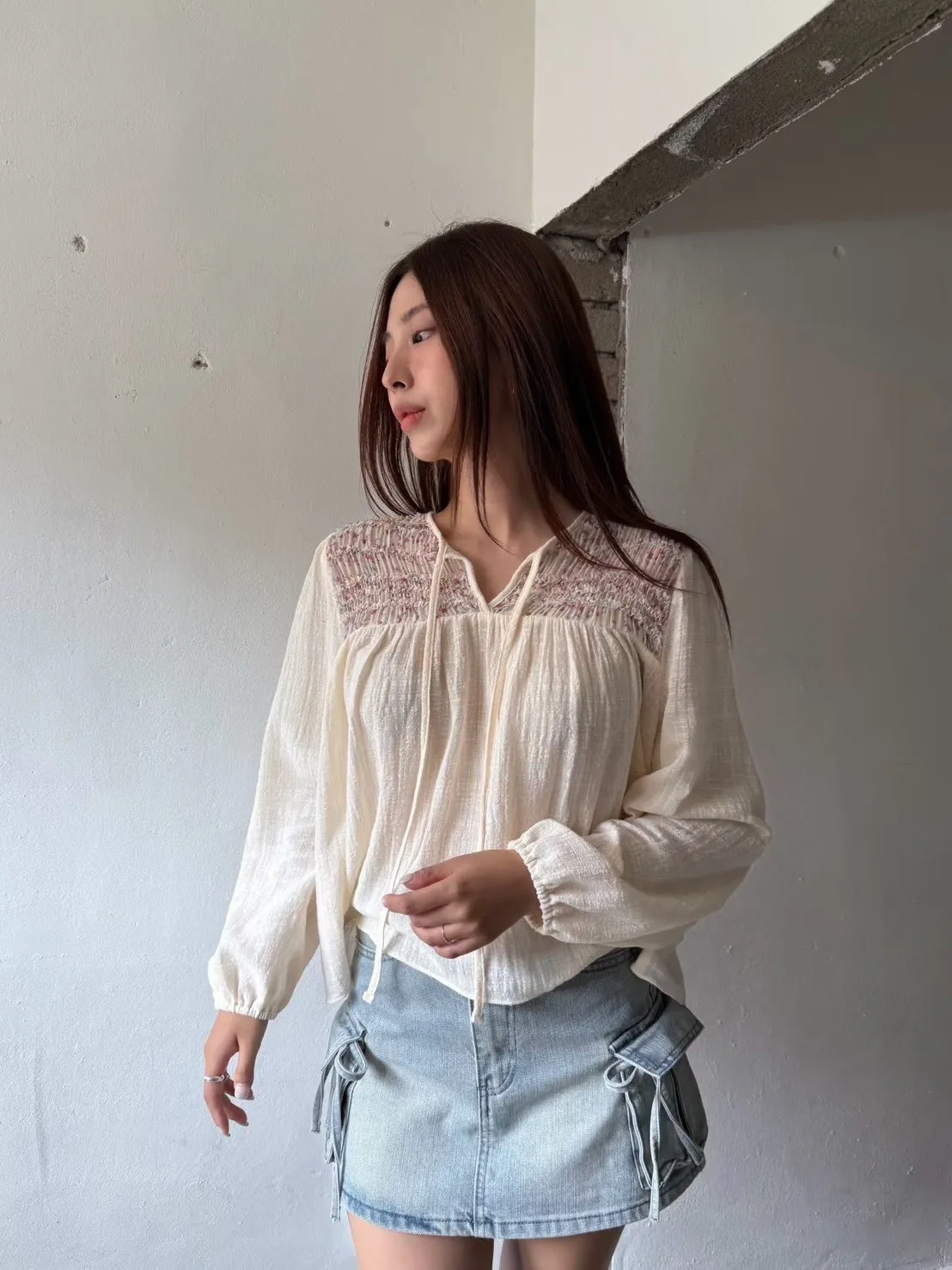 A4 1014素希歐膩家蝴蝶結牛仔工裝短裙