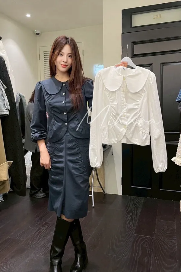 A11 1014素希歐膩家小領片排釦圓領棉質上衣