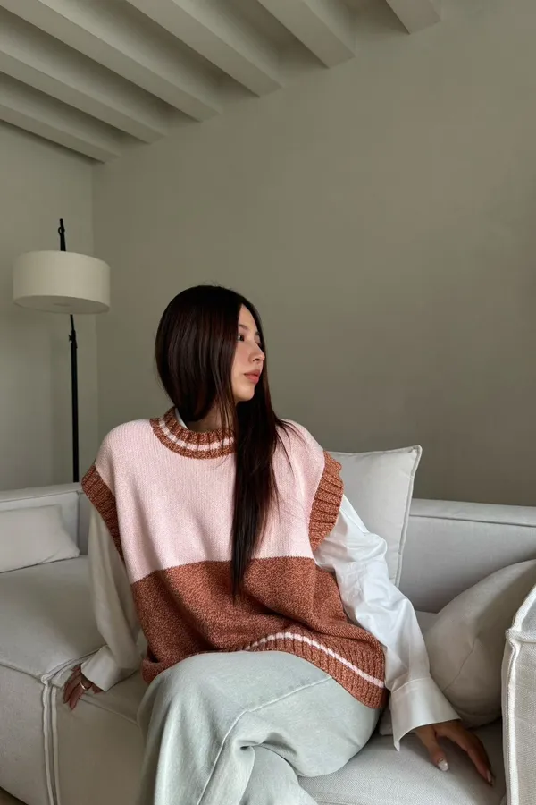A19 1014素希歐膩家撞色圓領棉質針織背心