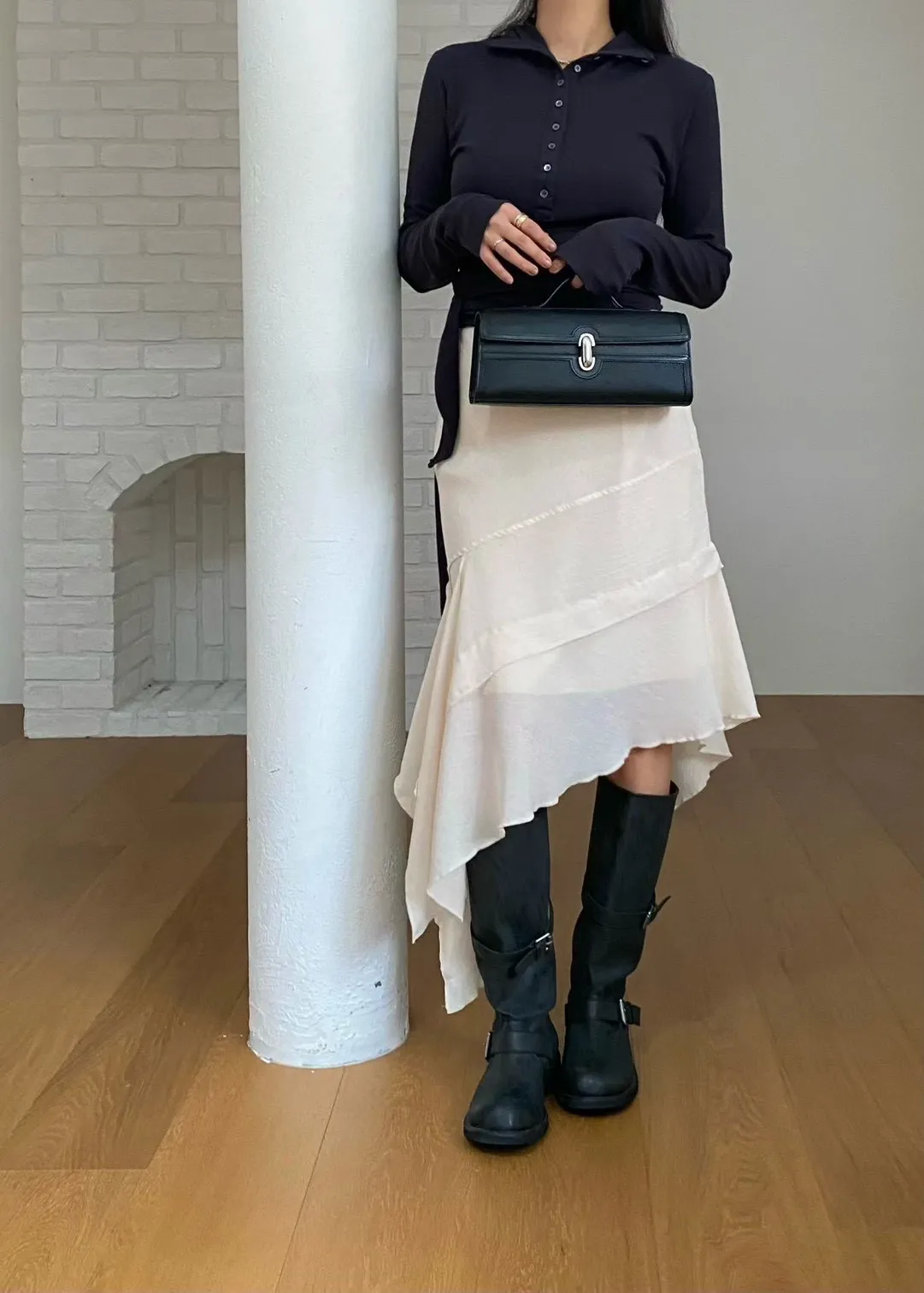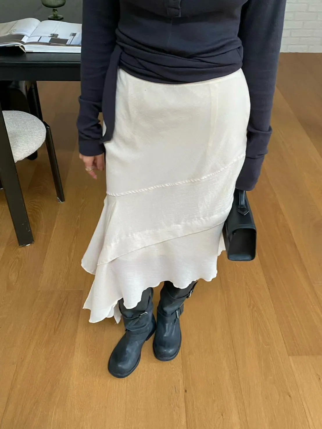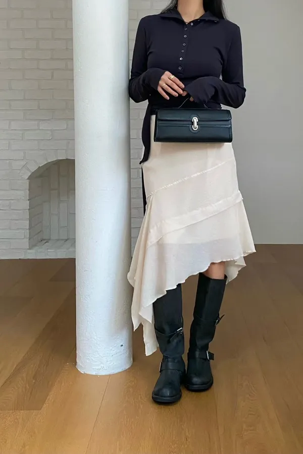 A23 1014質感設計歐膩家後開衩不規則雪紡半裙