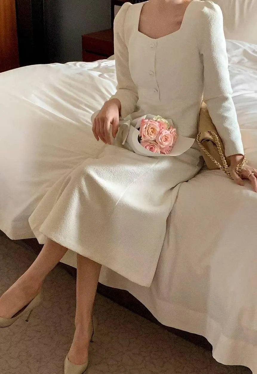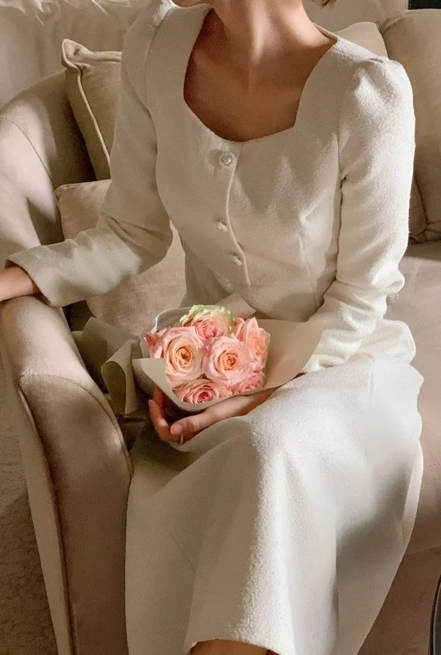 E170 1015名媛洋裝家桃心領小香長洋裝(S/M)