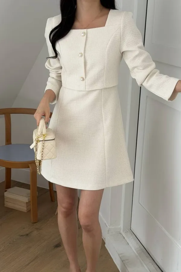 E172 1015名媛洋裝家方領小香短洋裝(S/M)