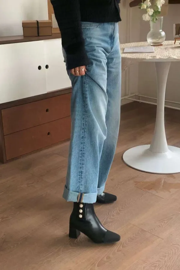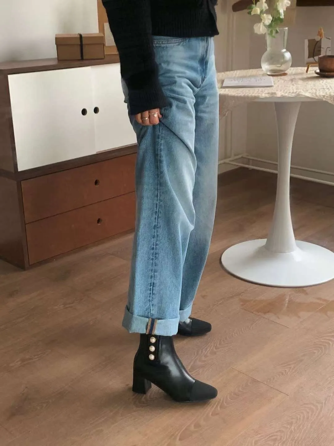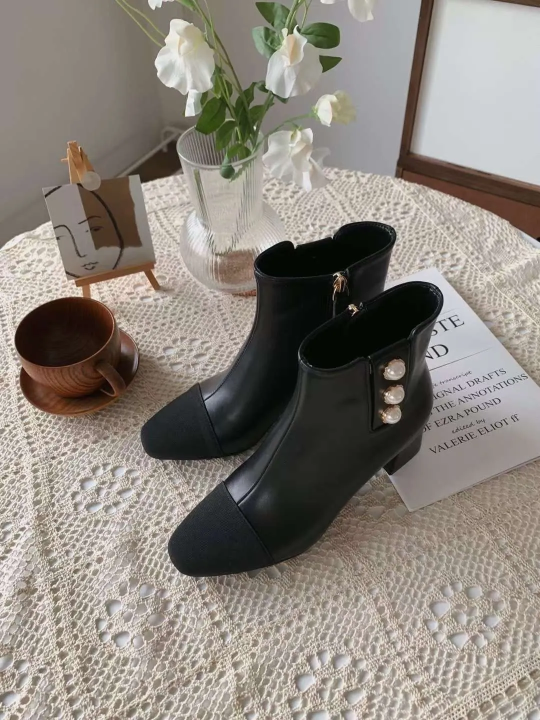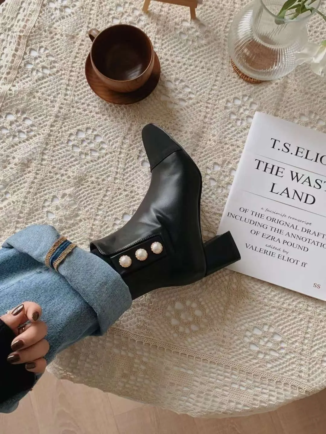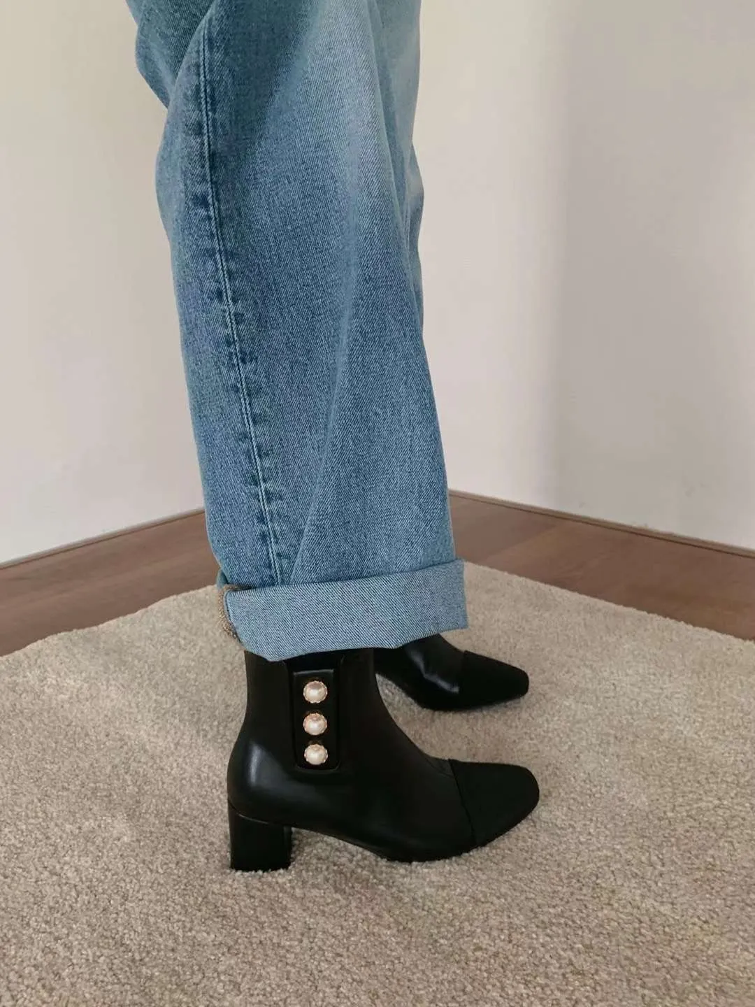A6 1015拼接珍珠異材質尖頭短靴 5179