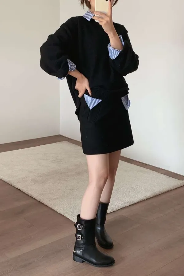 A8 1015雙扣環鍊條中筒靴 3013