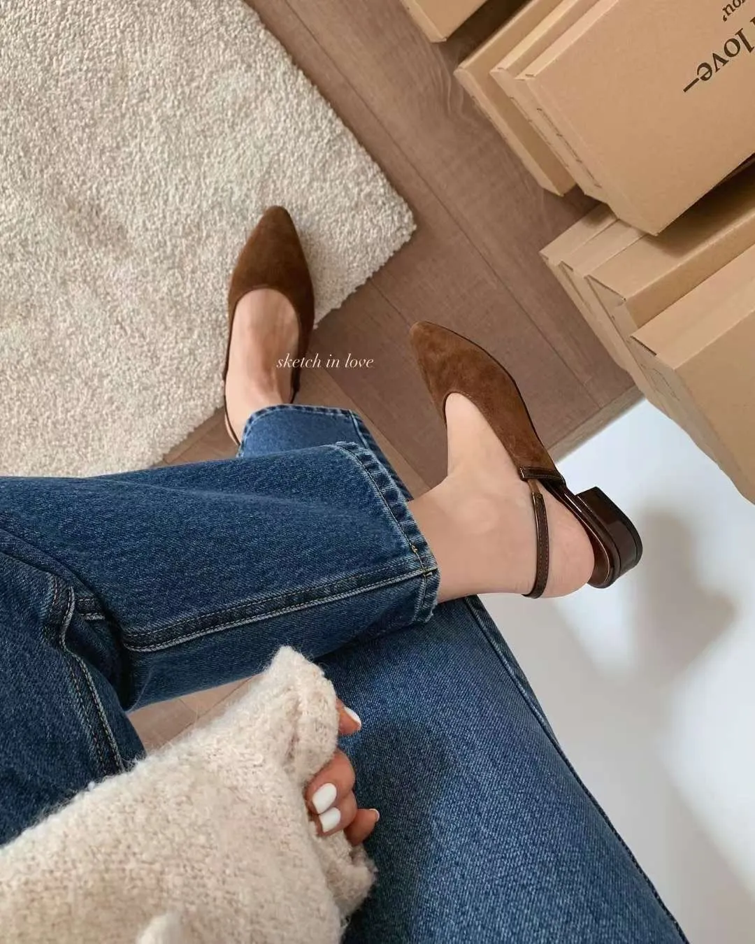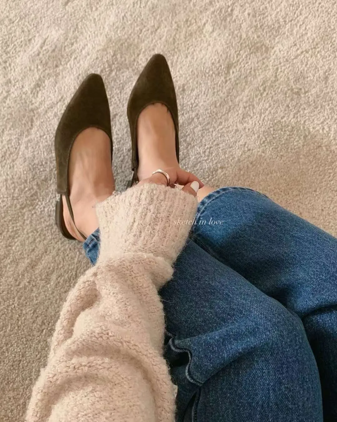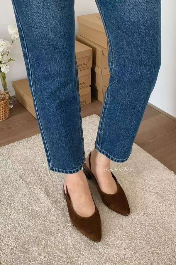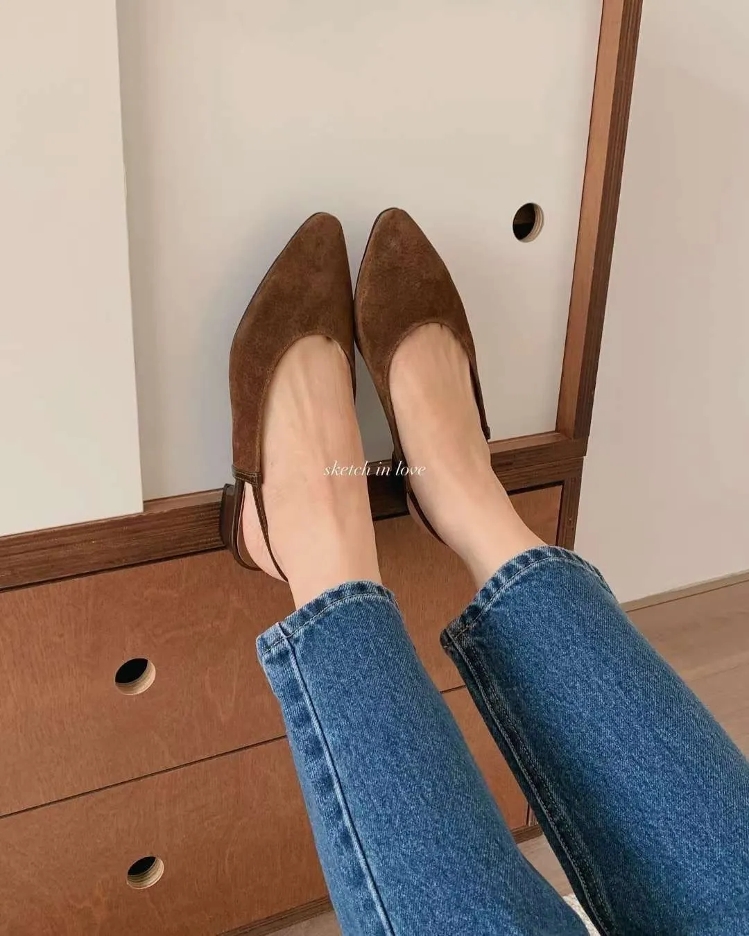 A18 1015拼接異材質真皮尖頭低跟鞋 2901