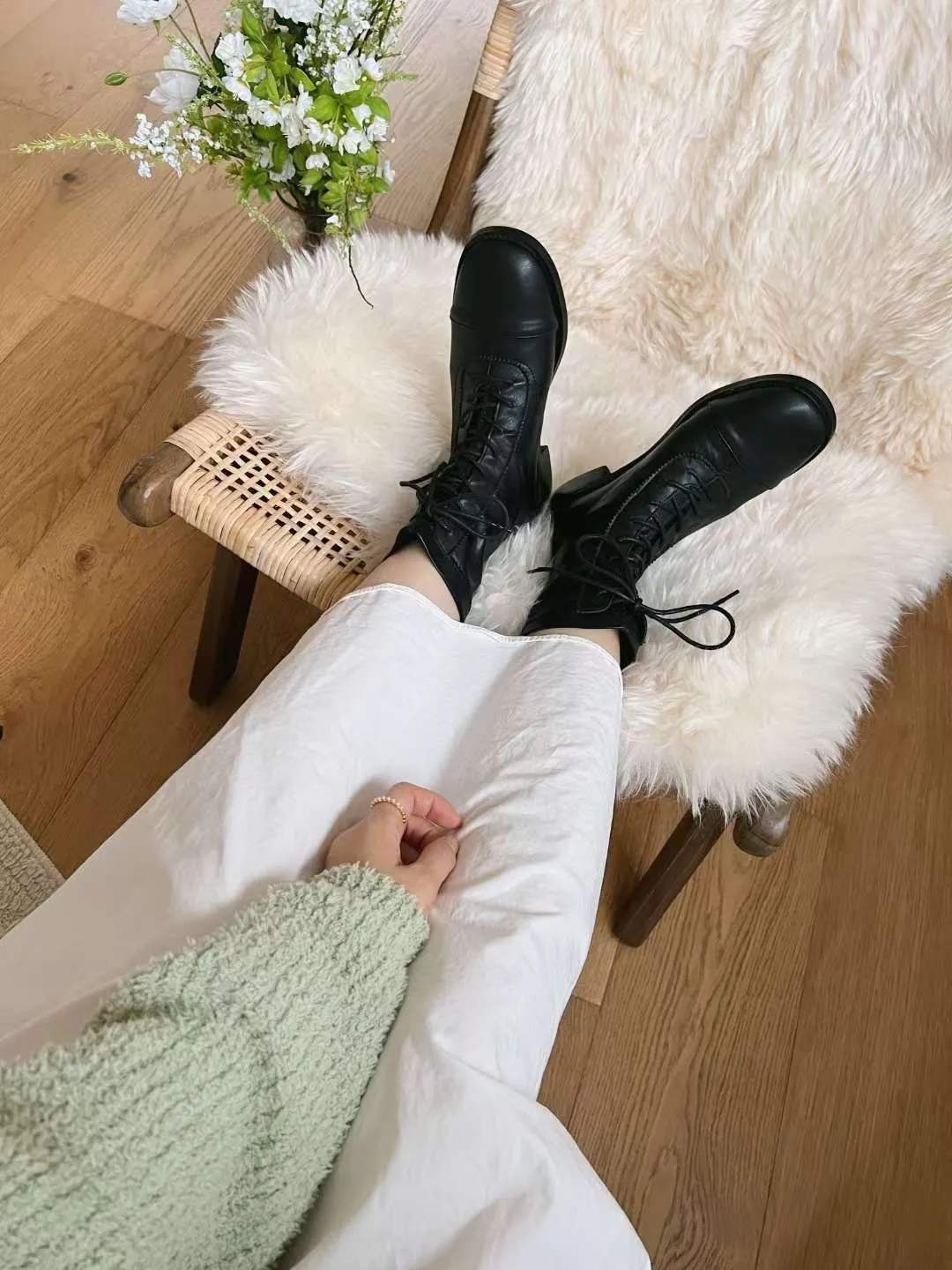 A22 1015真皮綁帶低筒靴 2869
