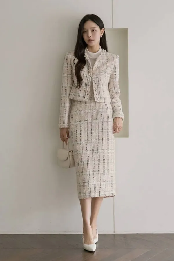 A25 1015名媛洋裝家後開衩格紋小香半裙