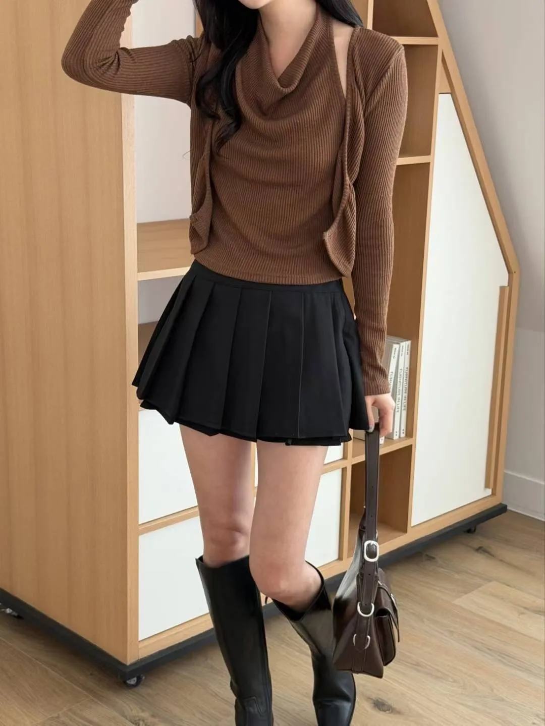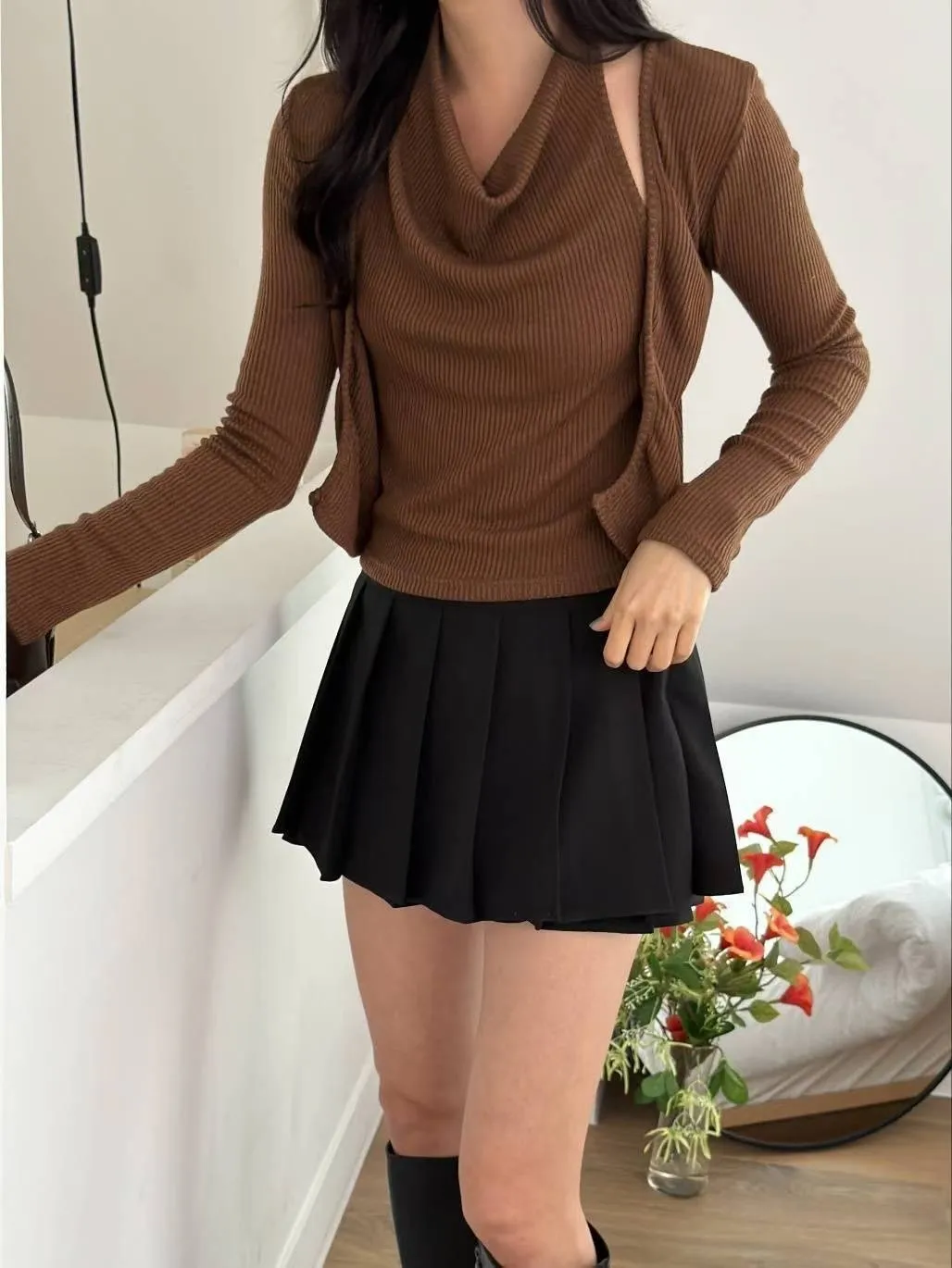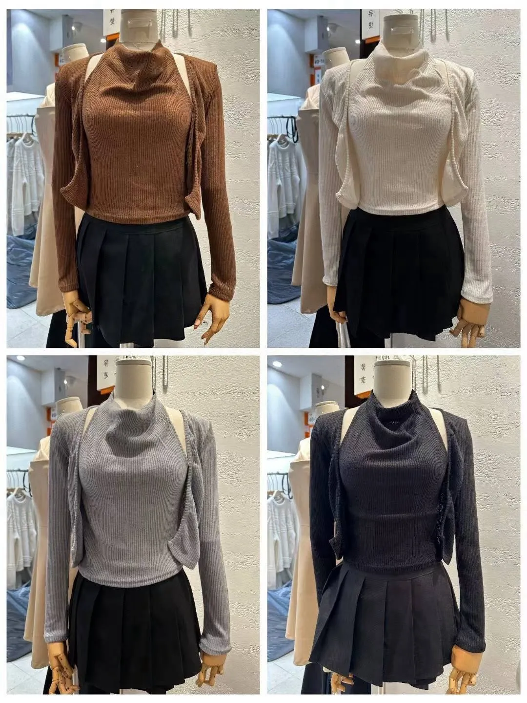 A27 1015名媛洋裝家假兩件式繞脖垂領針織背心罩衫