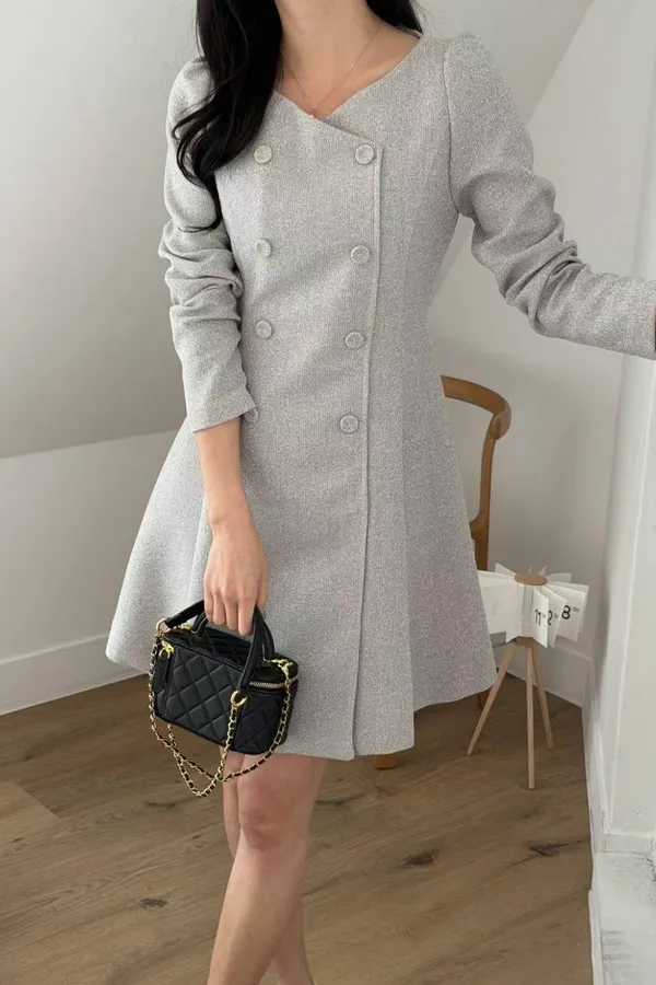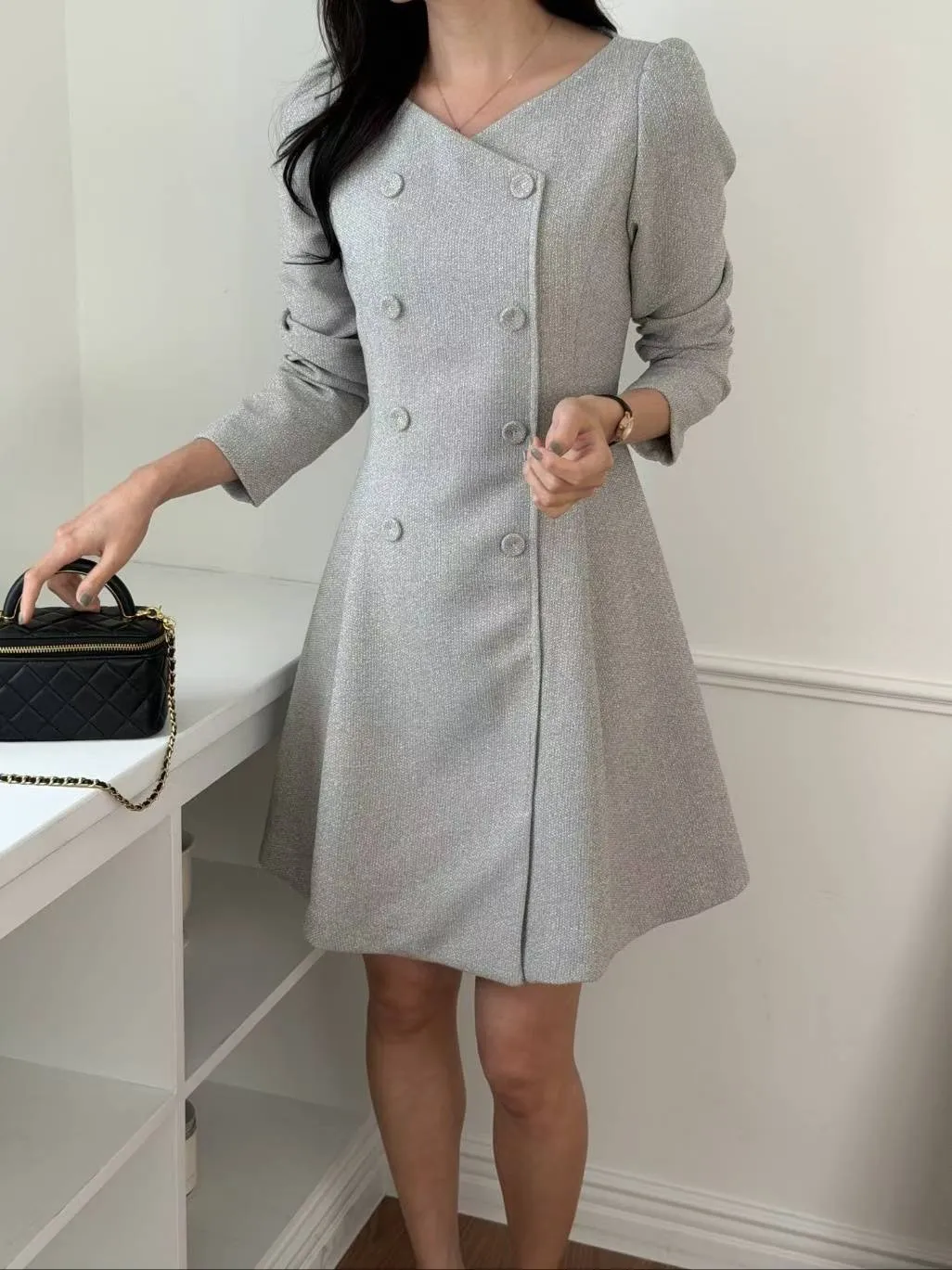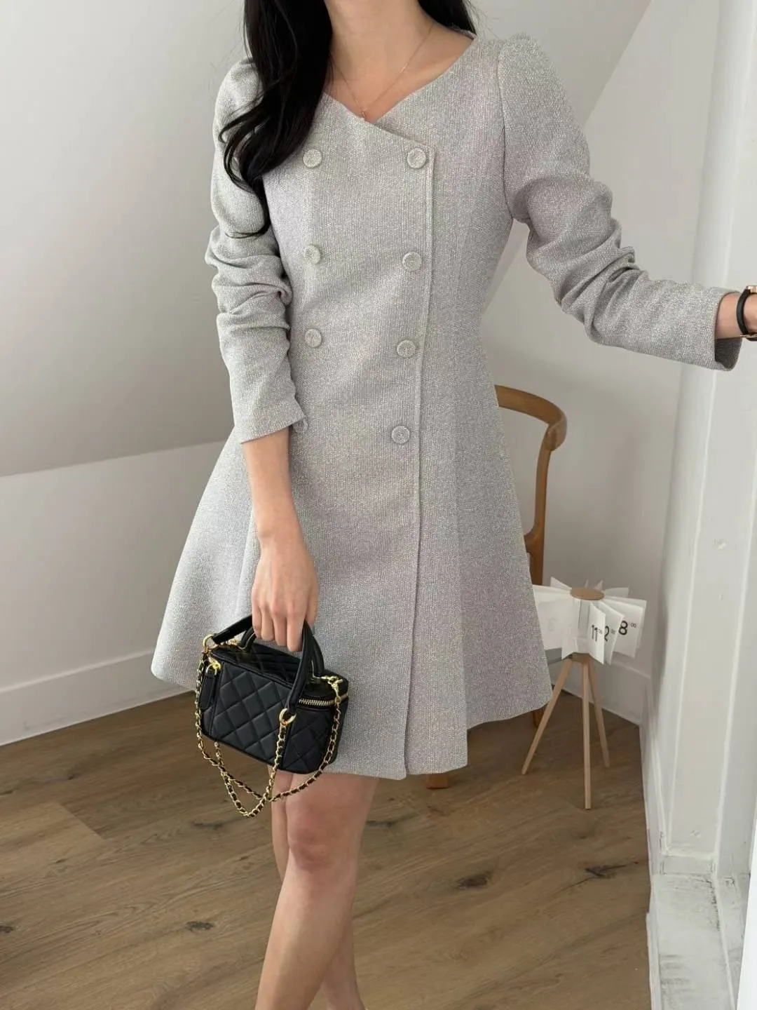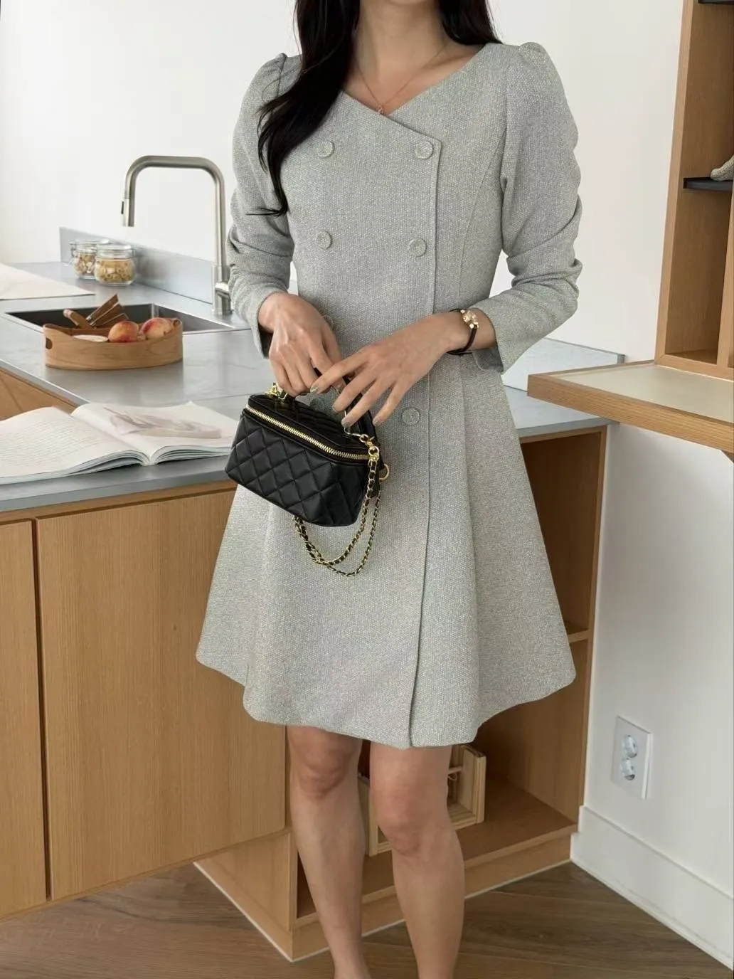 A33 1015名媛洋裝家雙排釦V領小香短洋裝
