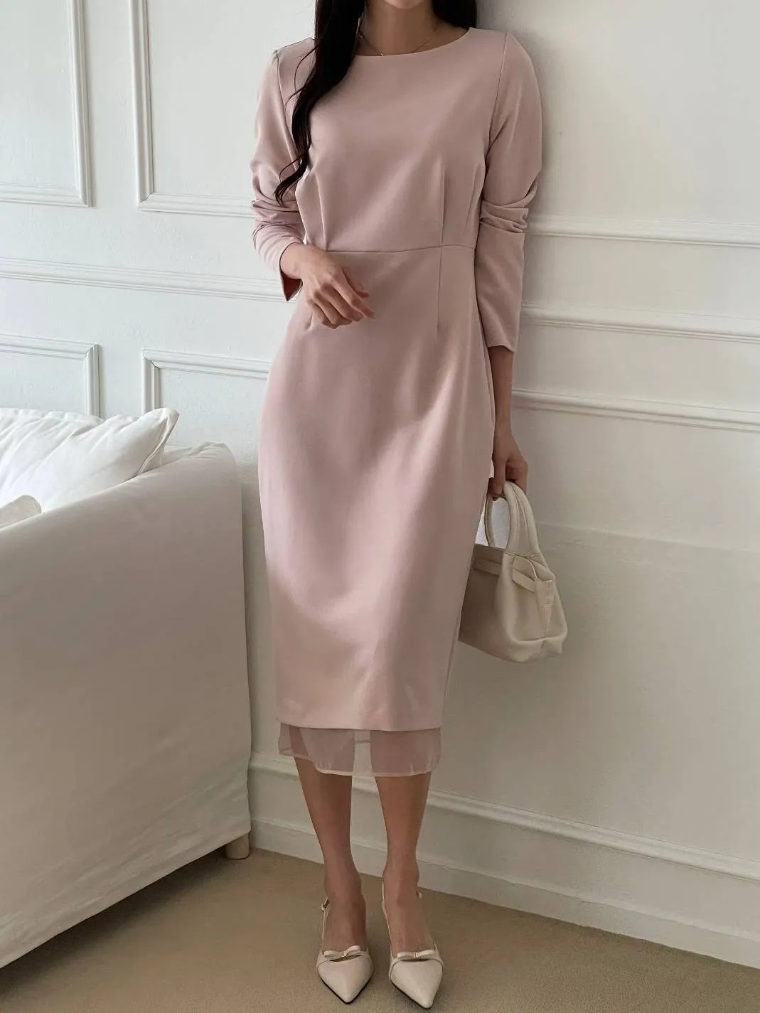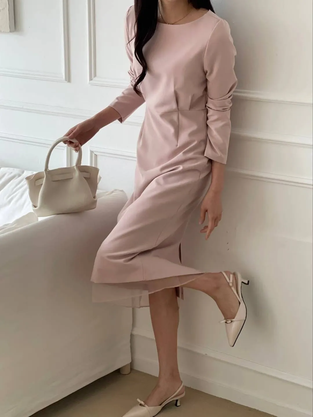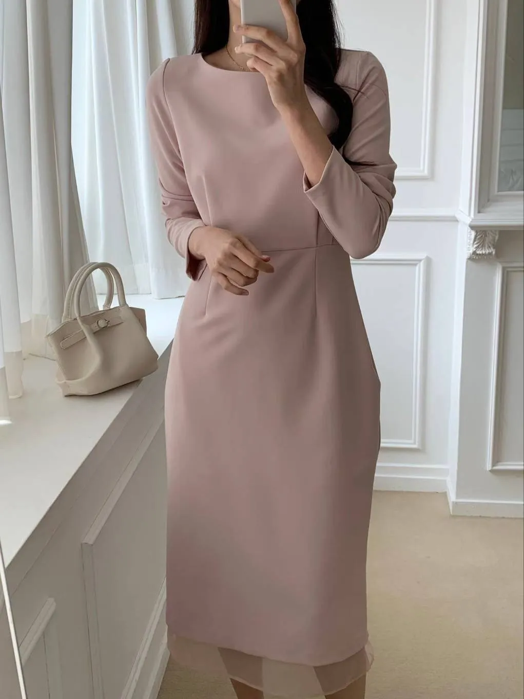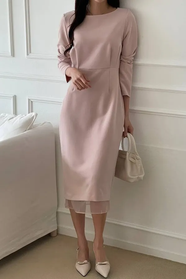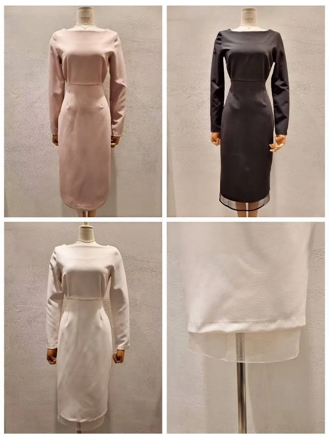 A36 1015名媛洋裝家後開衩拼接網紗下擺帆船領洋裝