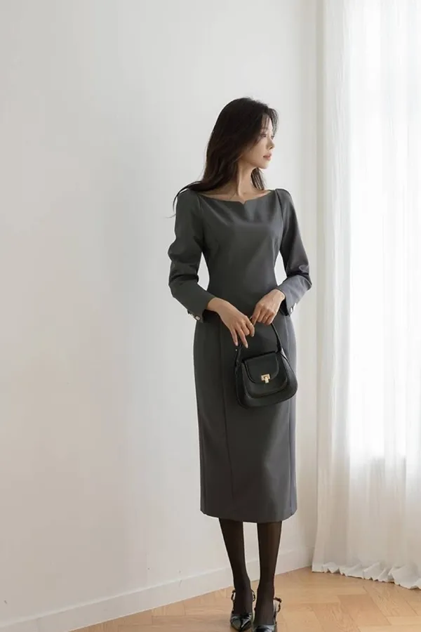 A39 1015名媛洋裝家後開衩帆船領洋裝附腰帶
