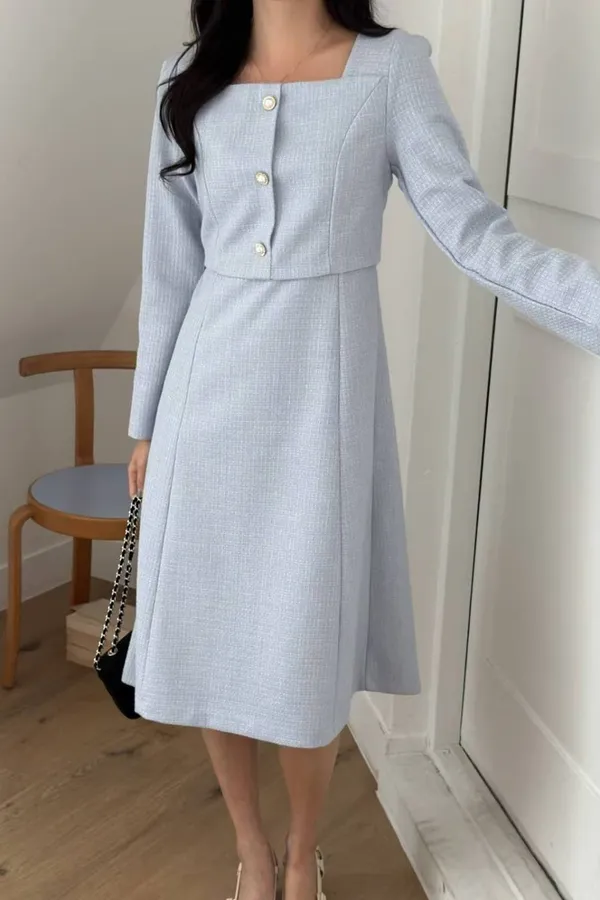 A41 1015名媛洋裝家排釦方領小香洋裝