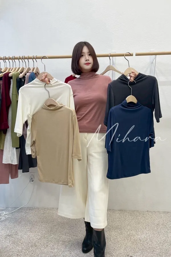A42 1015好穿舒服家天絲混羊毛半領上衣
