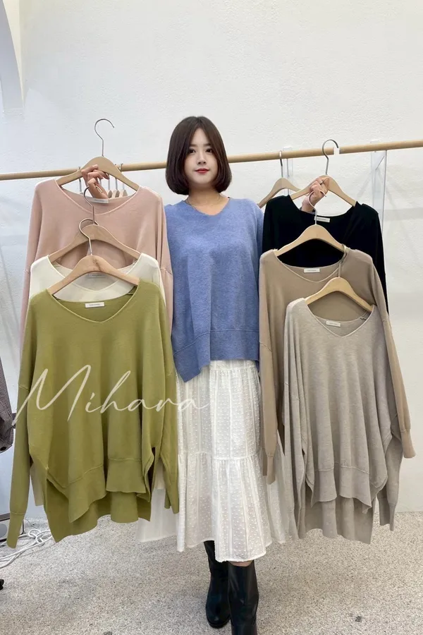 A50 1015好穿舒服家側開衩V領混羊毛毛衣