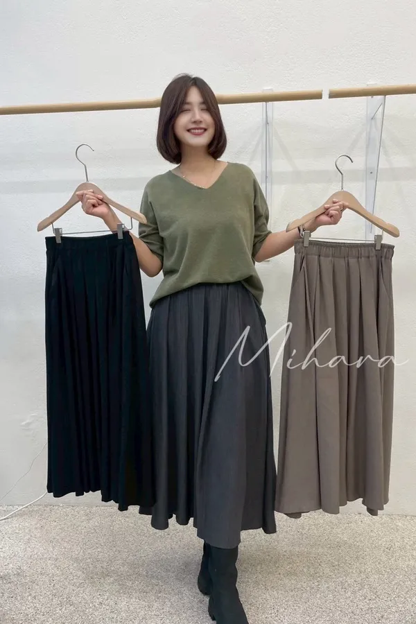 A60 1015好穿舒服家立體壓褶混羊毛半裙