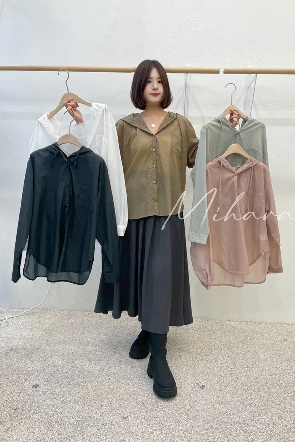 A61 1015好穿舒服家連帽細格口袋襯衫