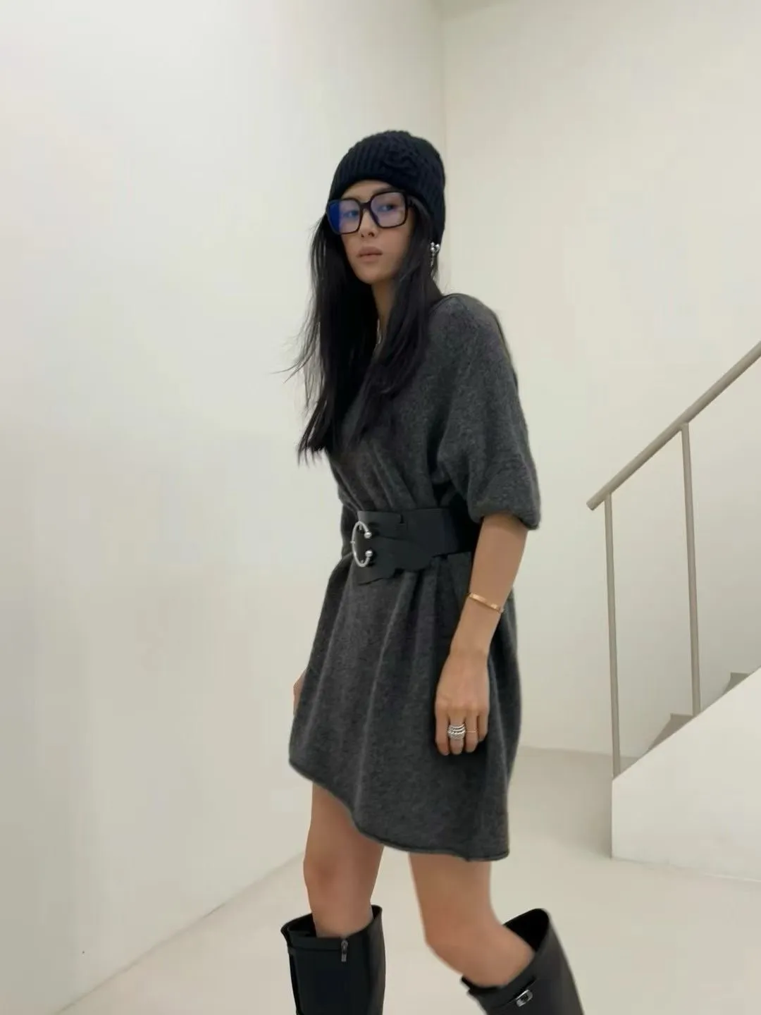 A69 1015高檔名模歐膩家圓領羊毛針織洋裝