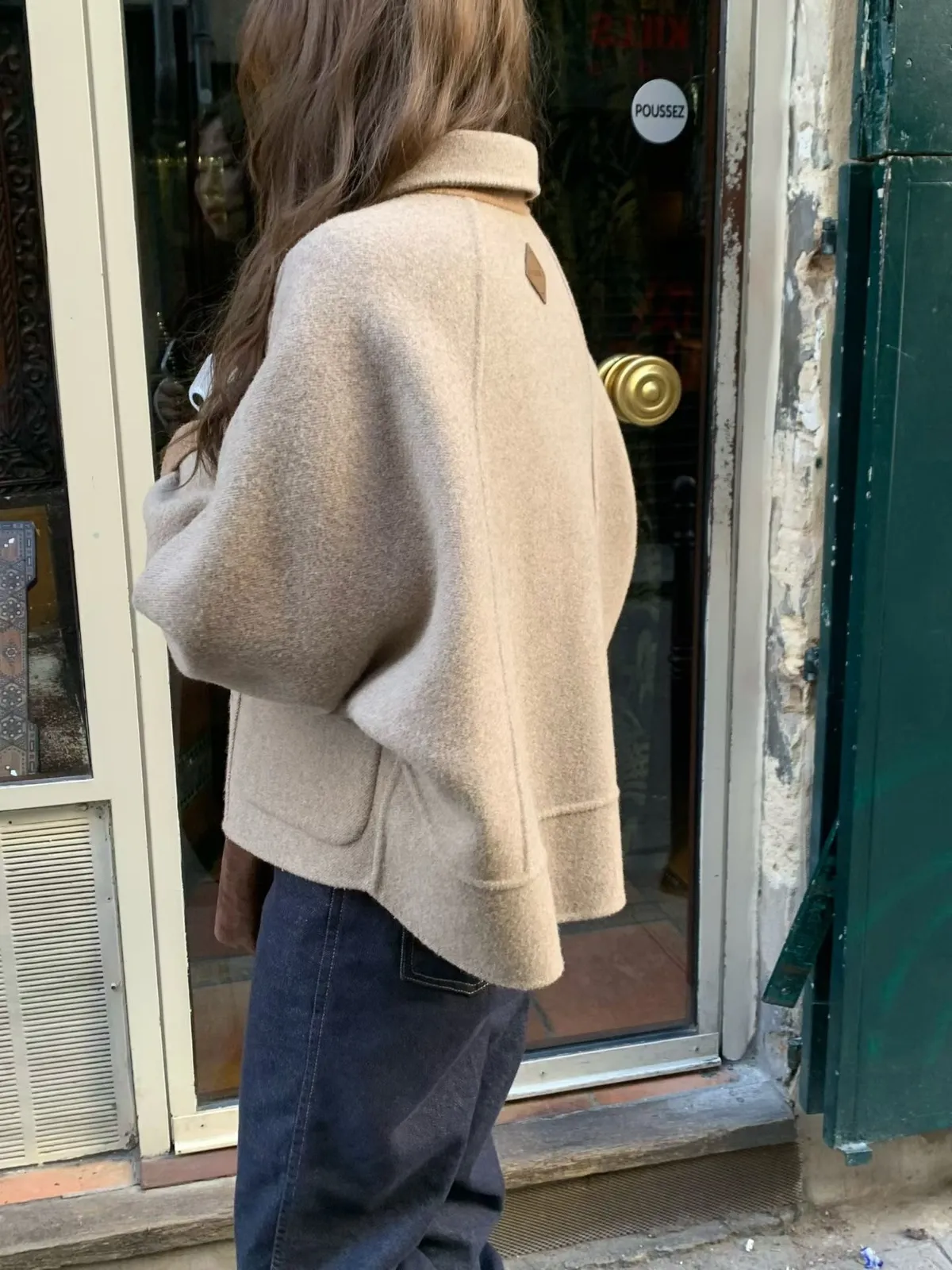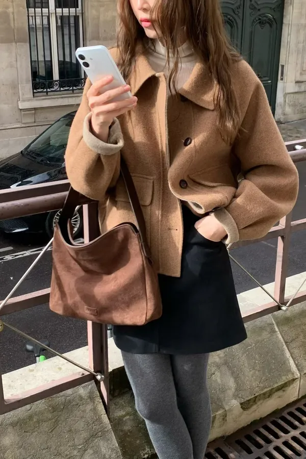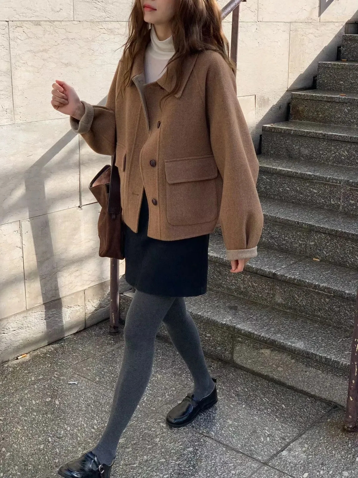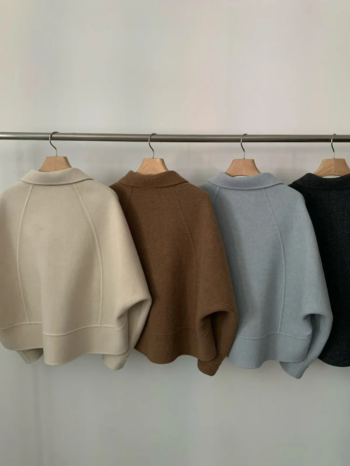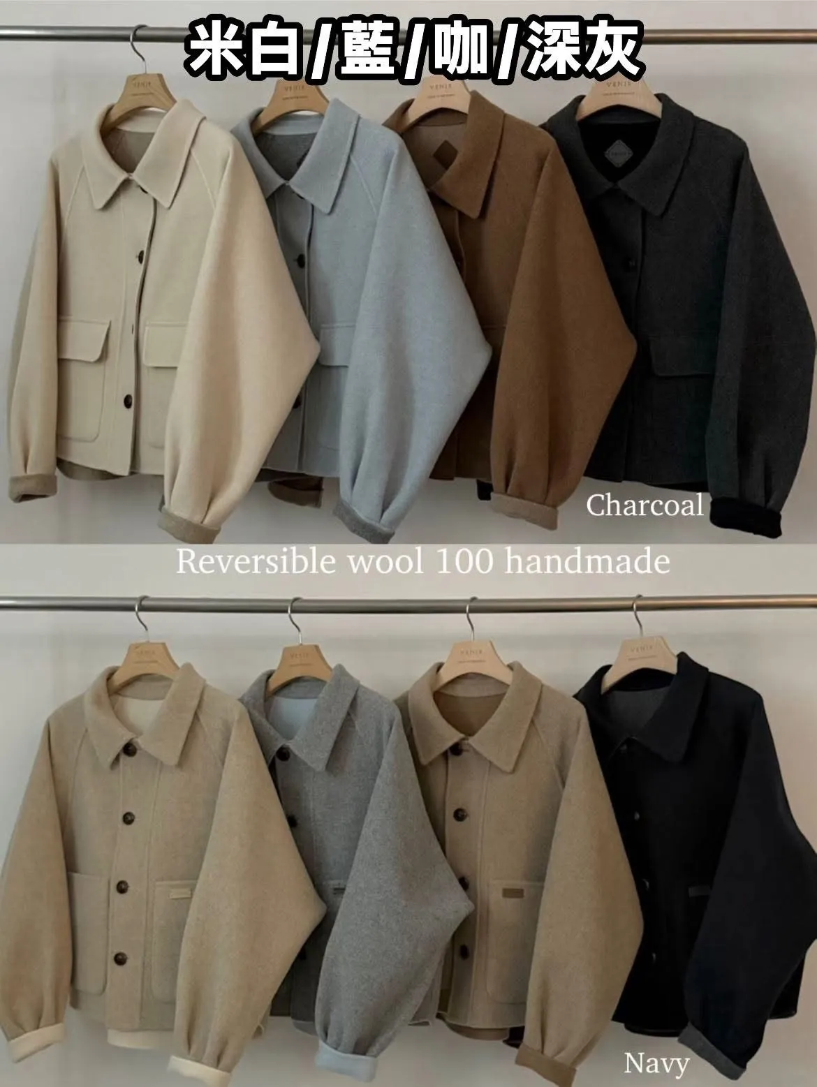 B505捲髮歐膩高級手工羊毛100%兩面穿外套4色