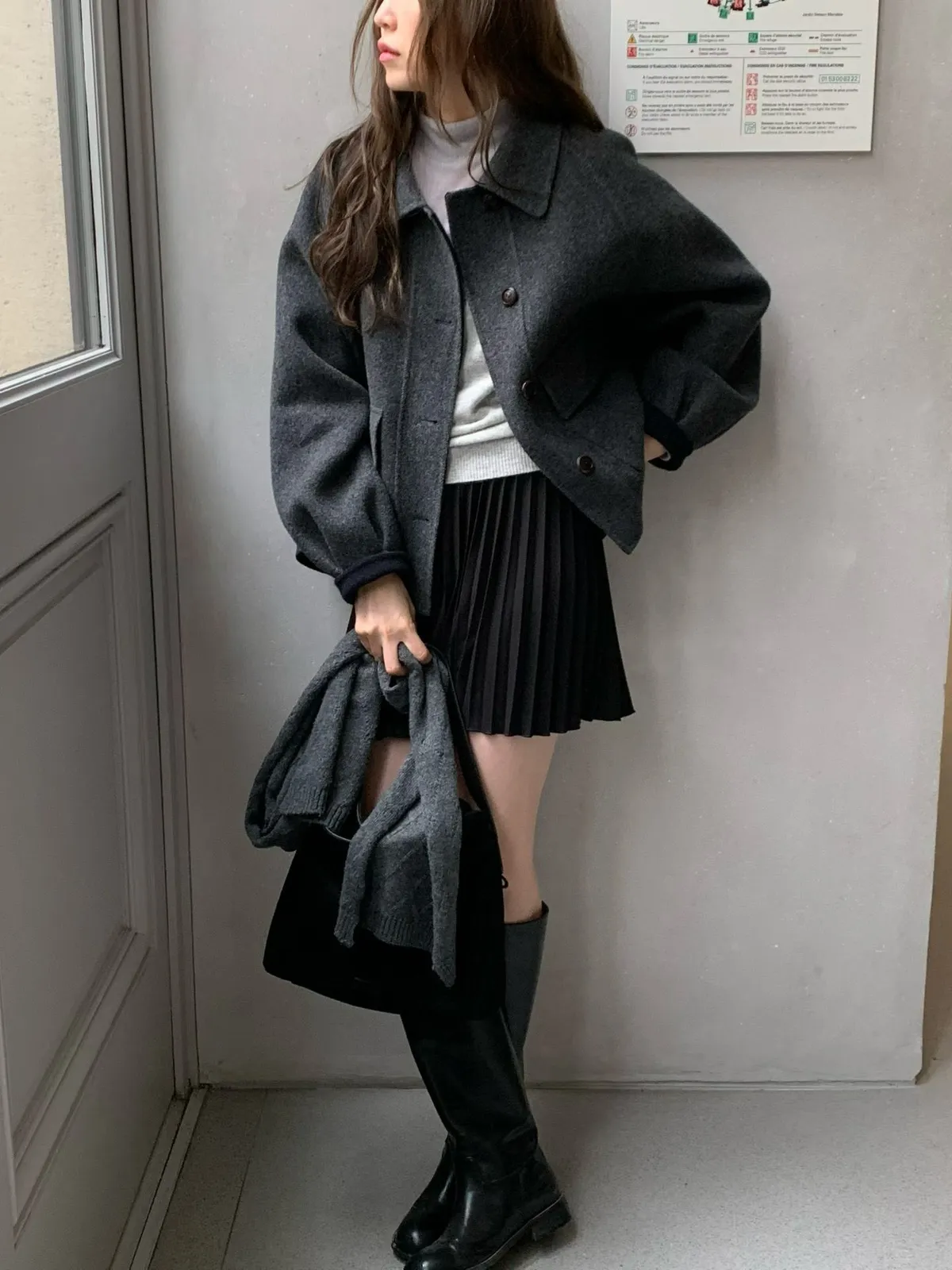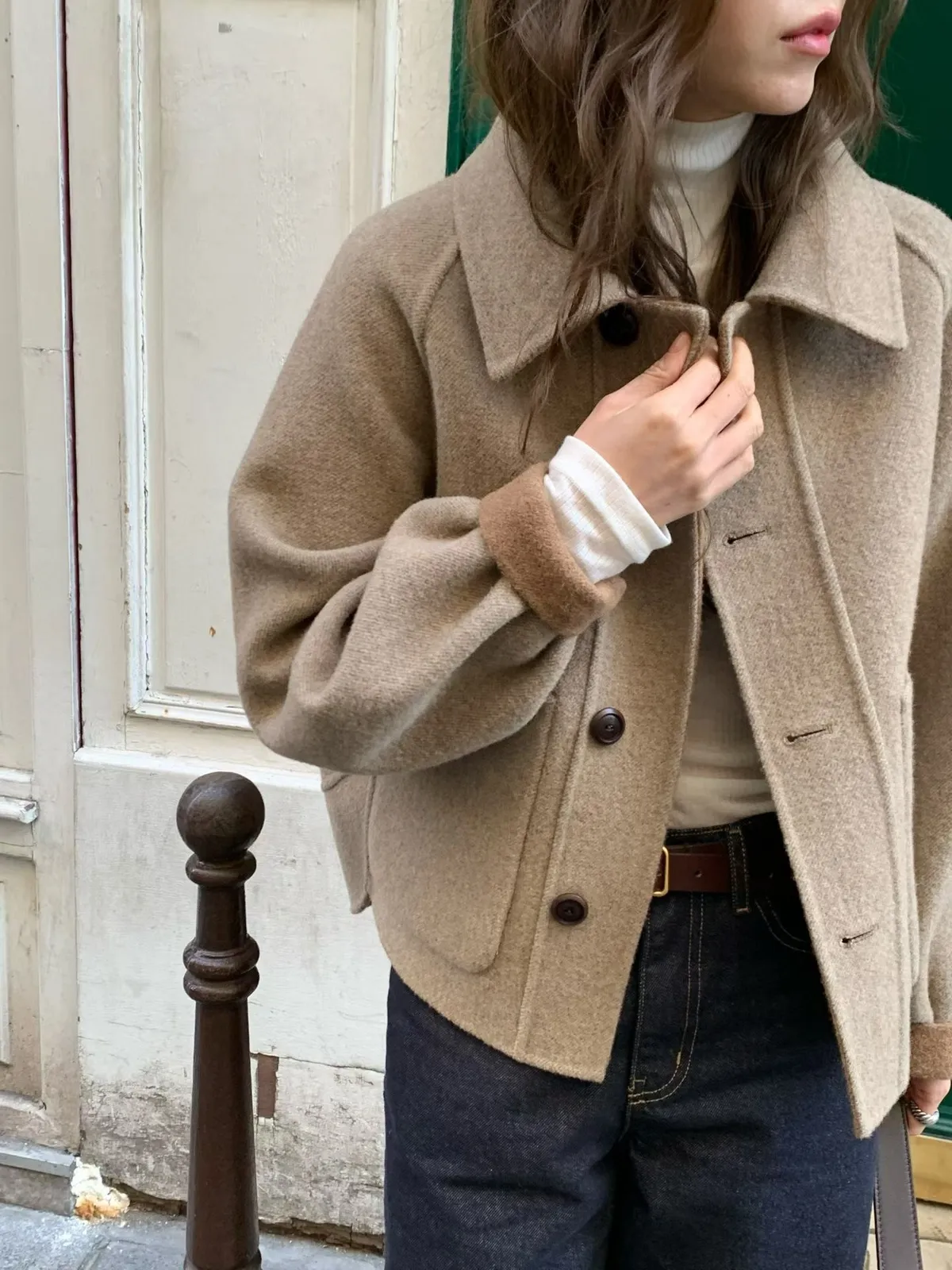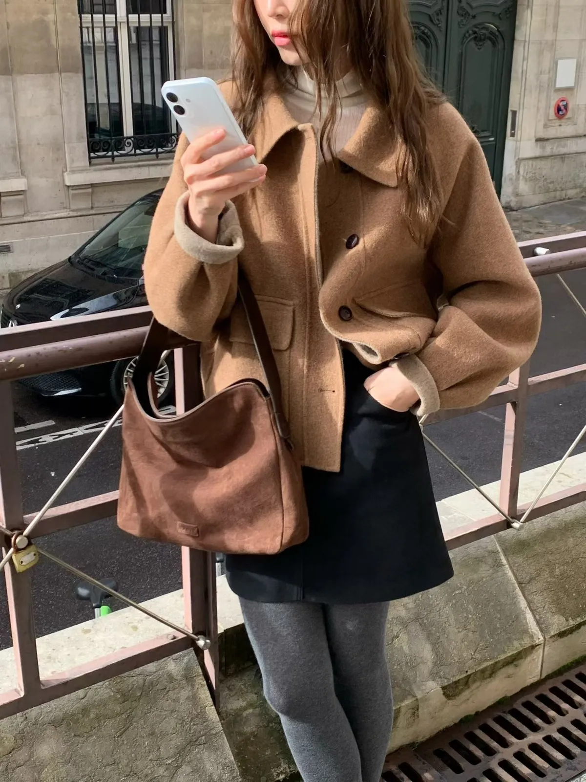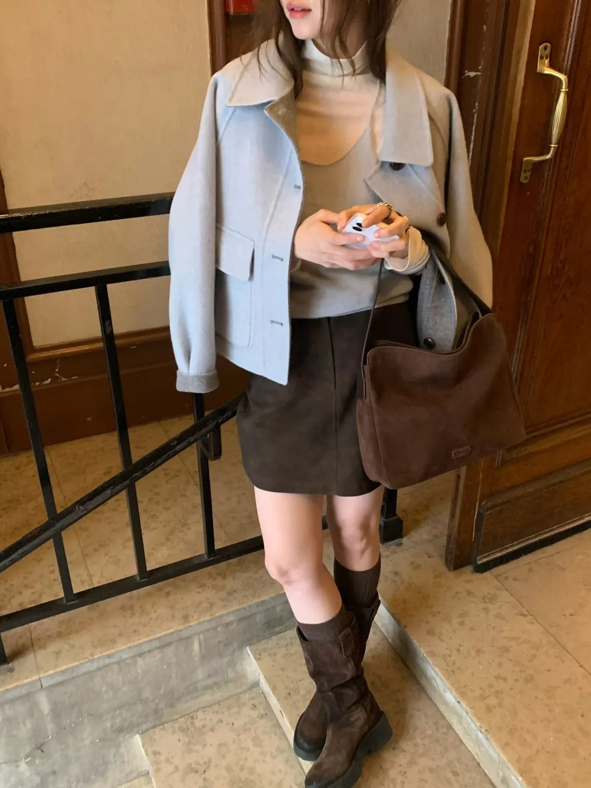 B505捲髮歐膩高級手工羊毛100%兩面穿外套4色