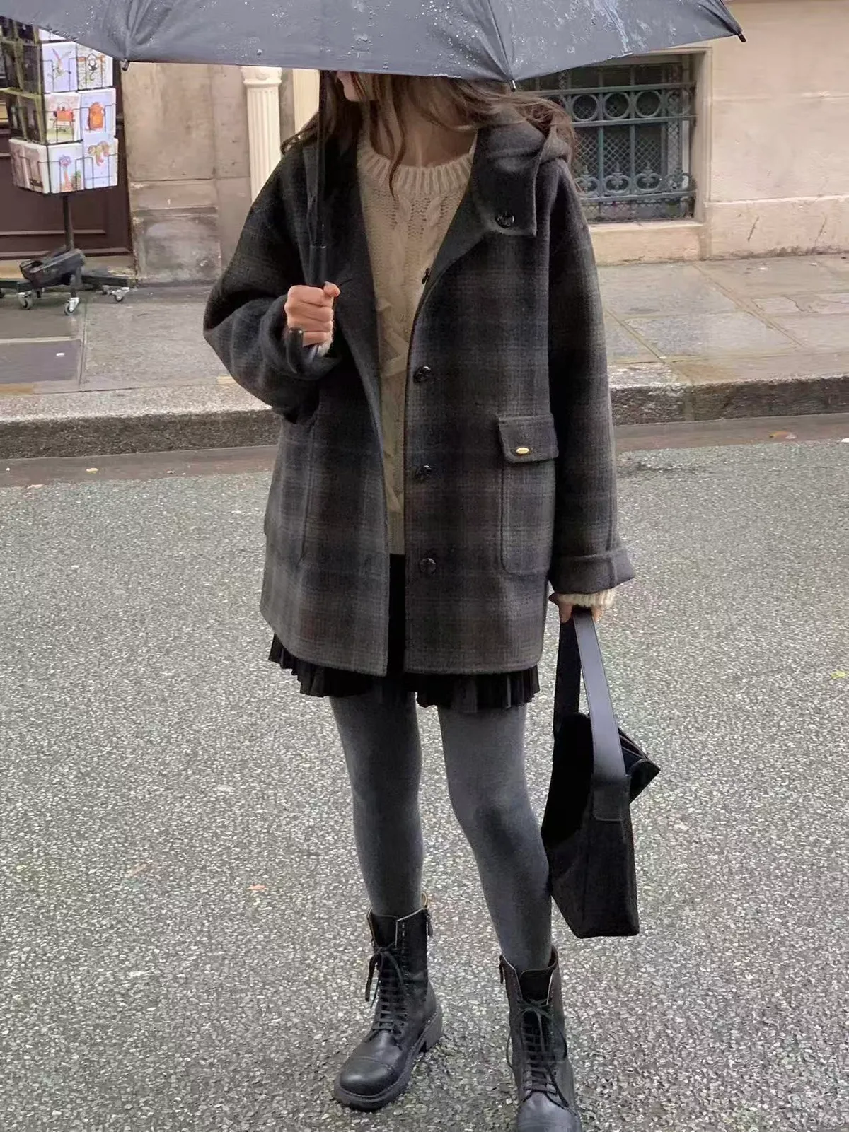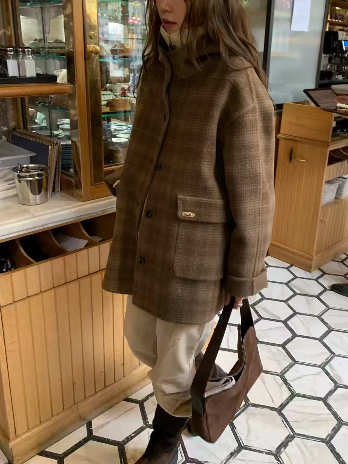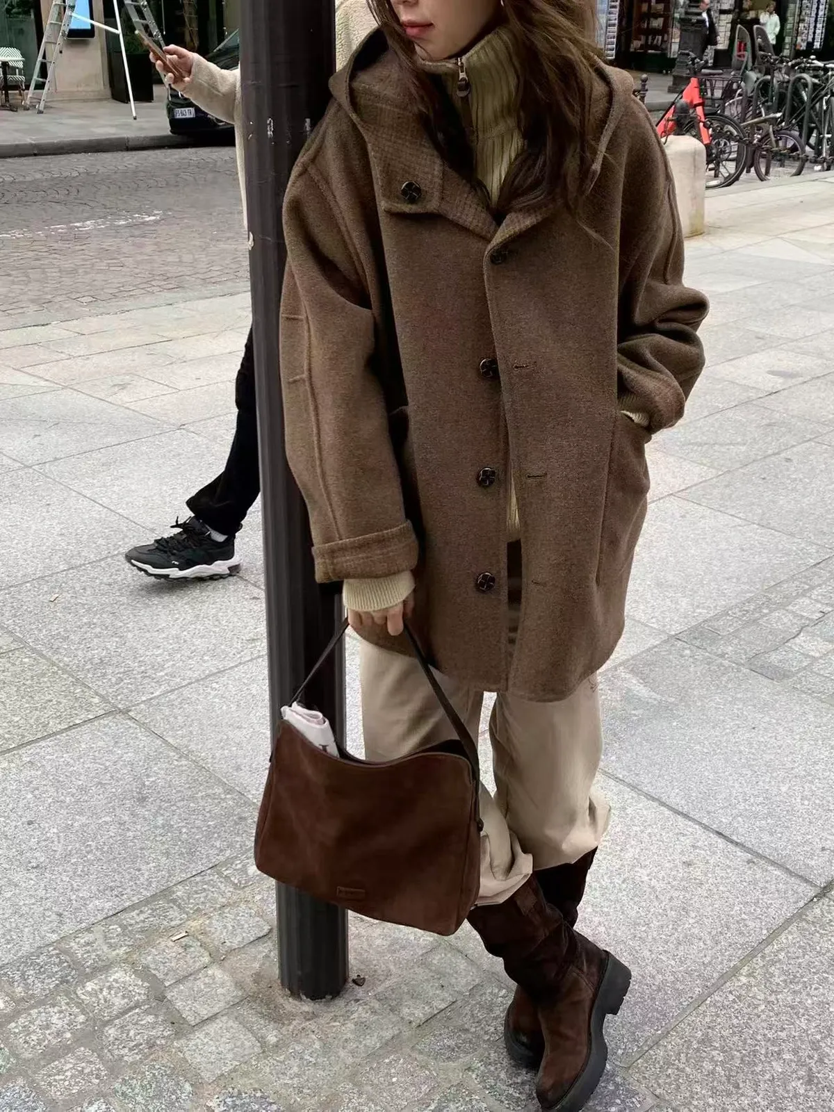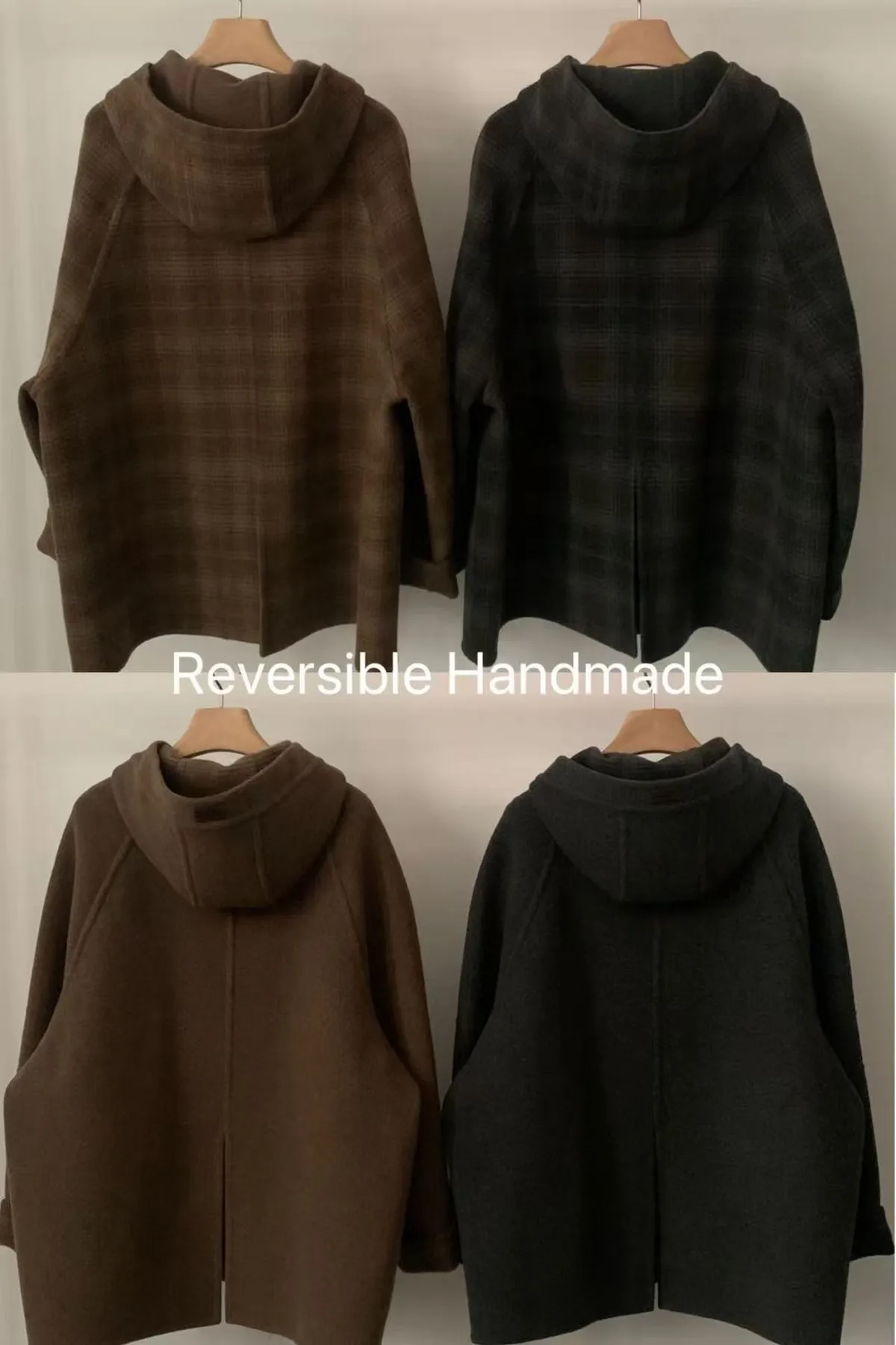 E100捲髮歐膩高級手工羊毛兩面穿外套2色