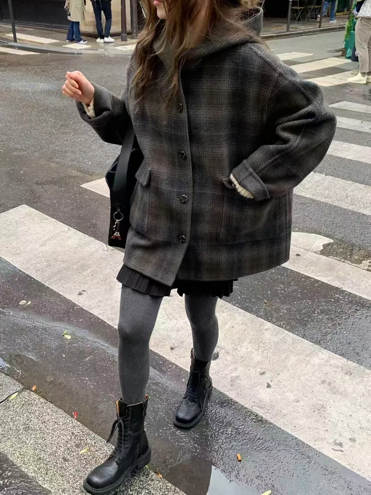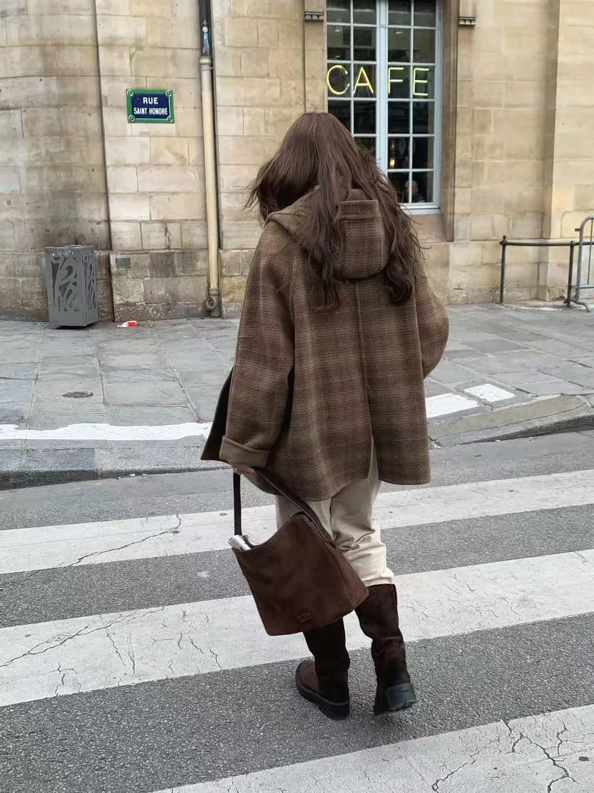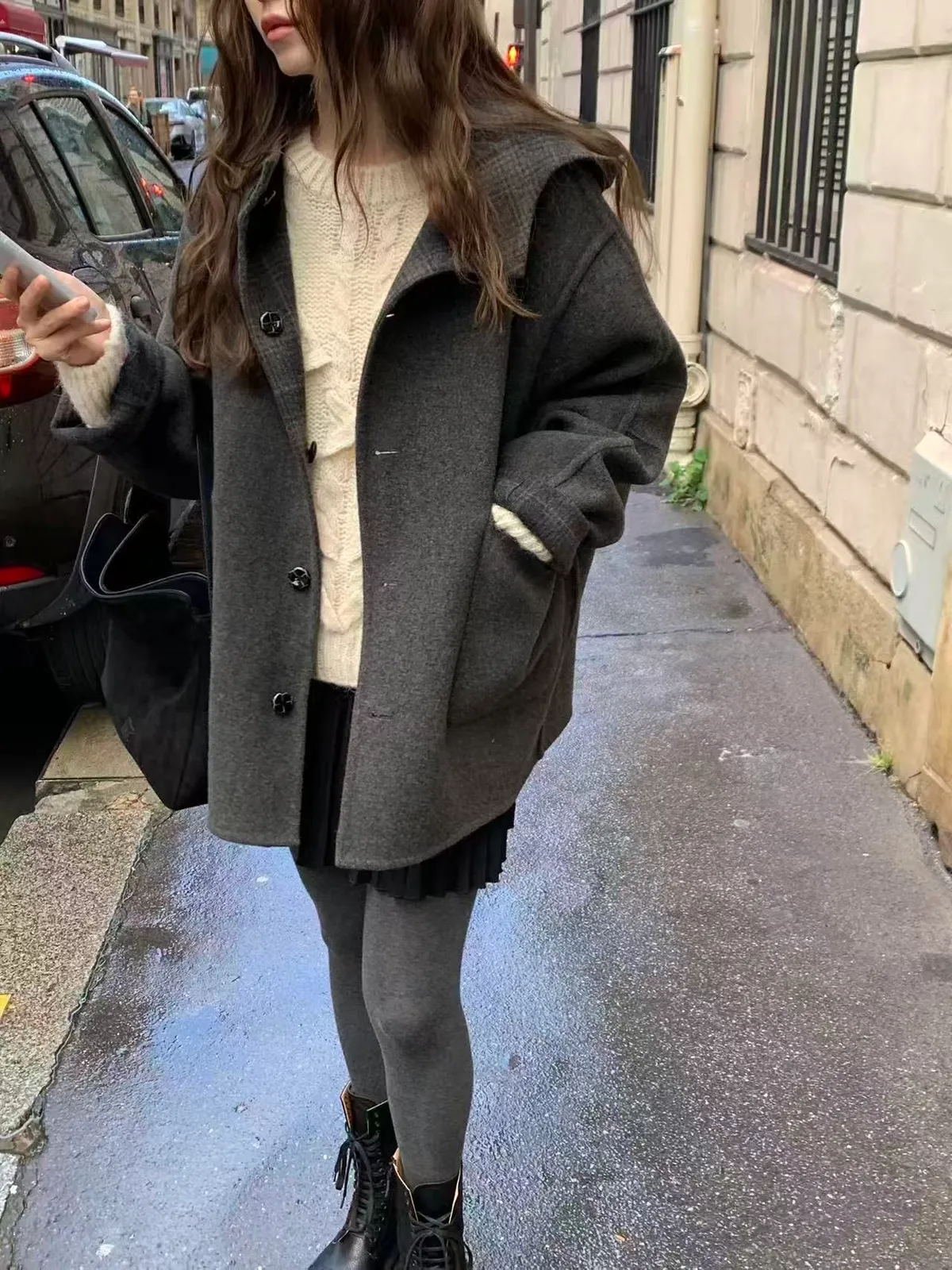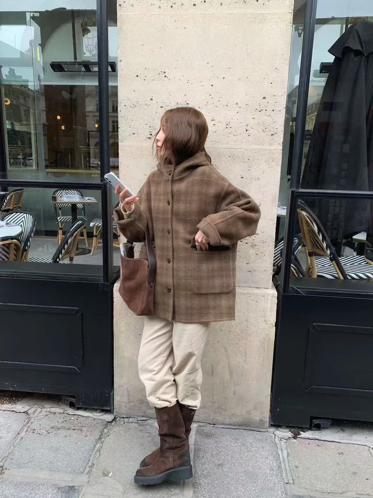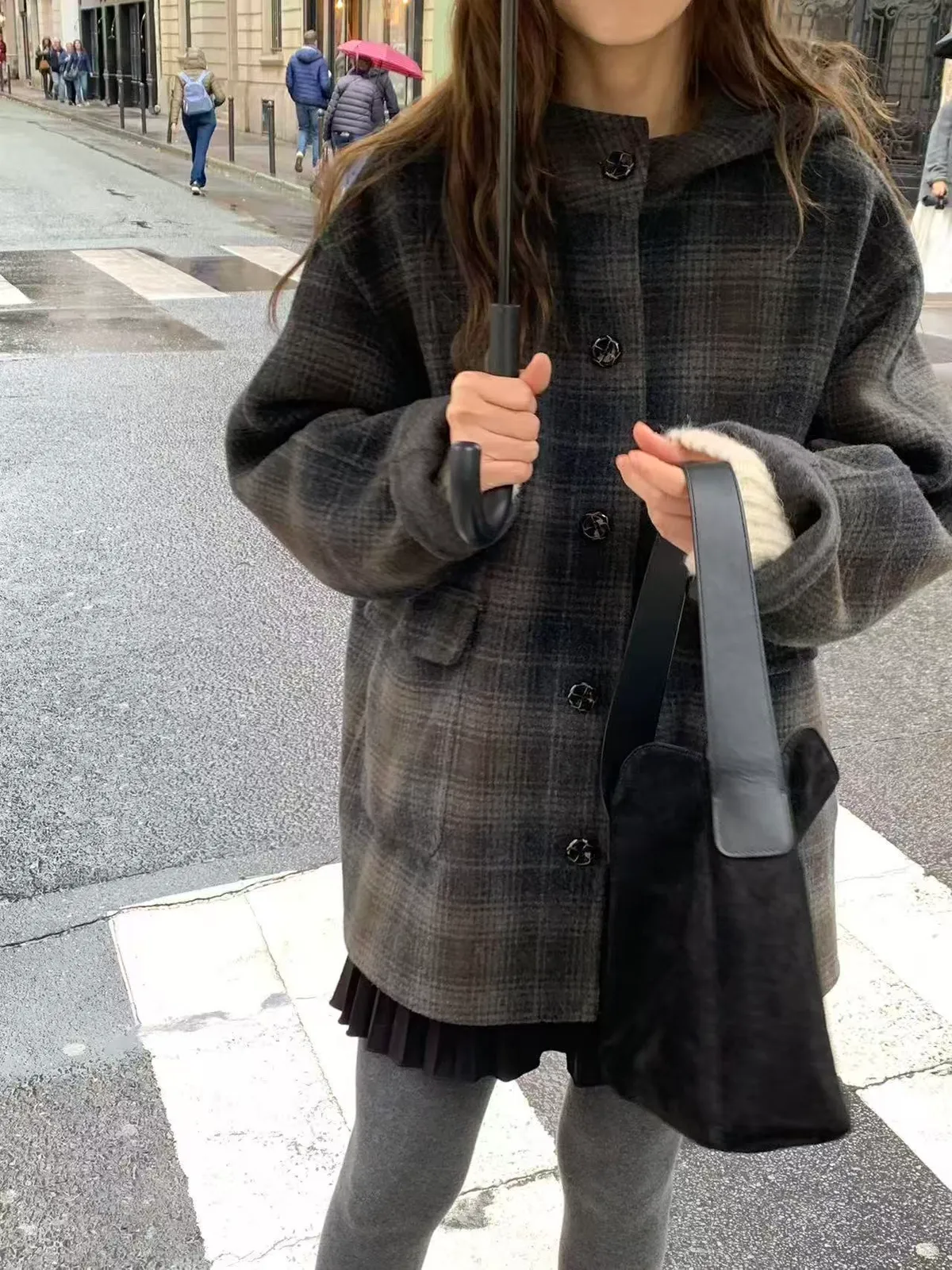 E100捲髮歐膩高級手工羊毛兩面穿外套2色