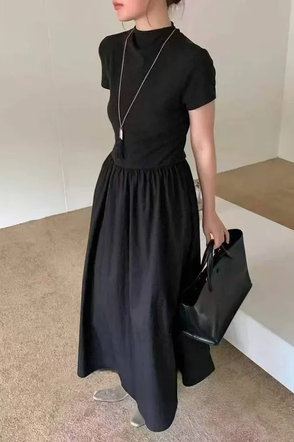 1019簡約中領素面洋裝