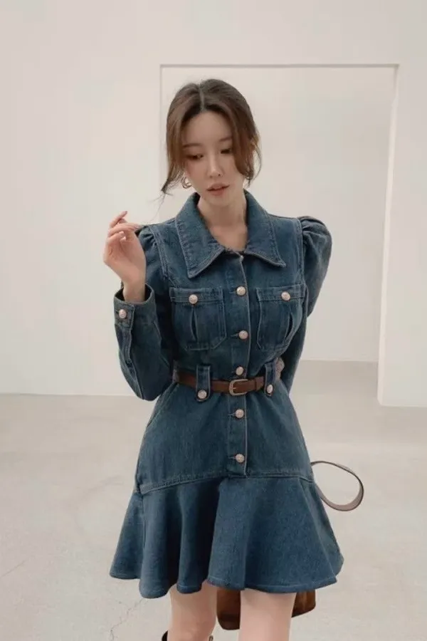 A11 1019翻領牛仔魚尾洋裝(S/M)
