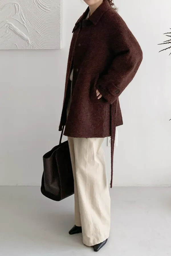 A36 1019高檔質感家後開衩羊毛混羊駝毛手工大衣外套附綁帶