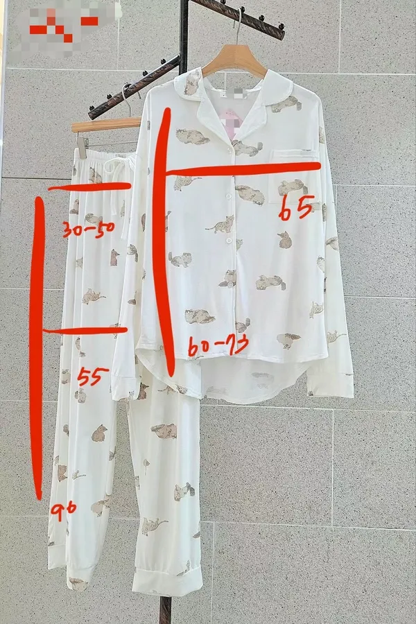 A47 1019甜美睡衣家貓貓排釦翻領V領睡衣+睡褲(SET)