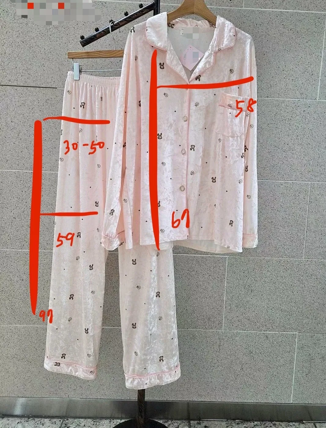A53 1019甜美睡衣家狗狗排釦翻領V領睡衣+睡褲(SET)