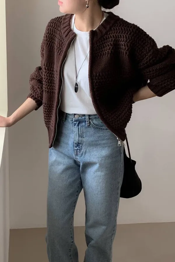 A64 1020外套家圓領麻花編混羊毛針織外套