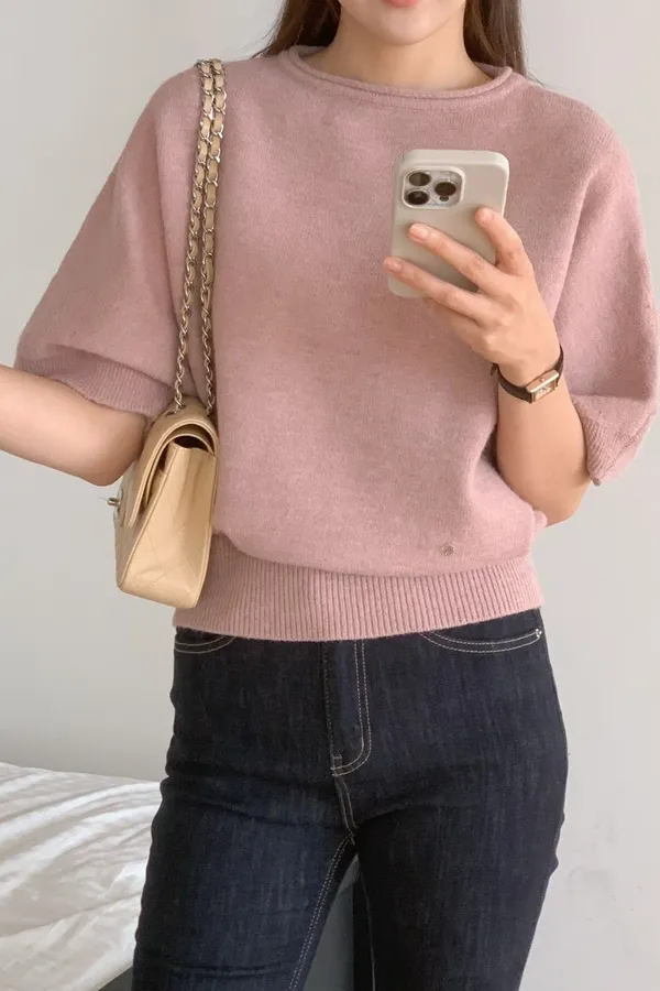 A69 1020針織家壓克力混人造絲圓領針織上衣