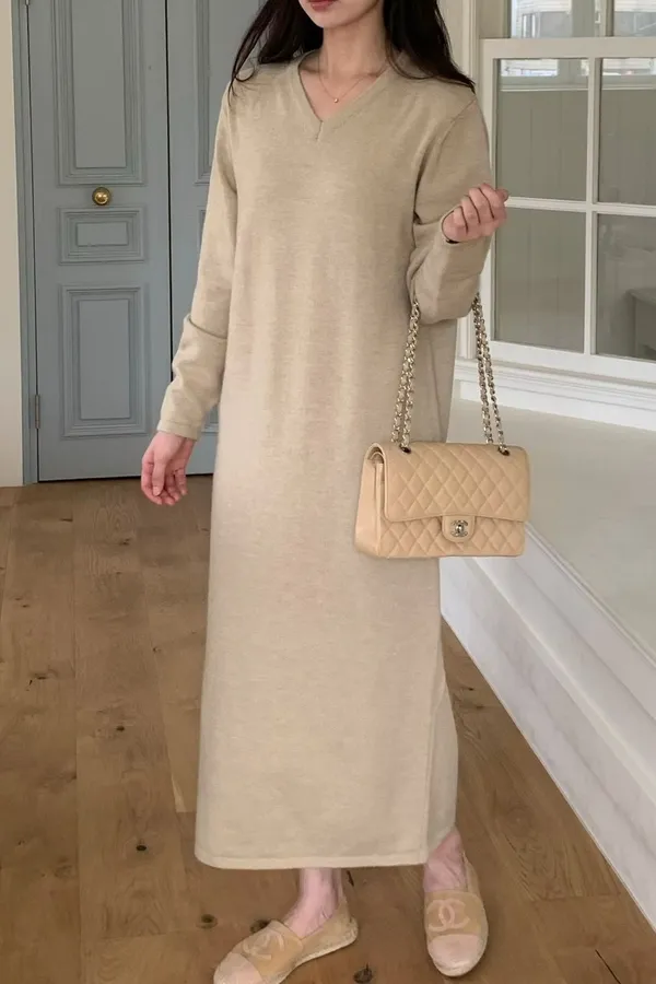A77 1020針織家V領針織洋裝