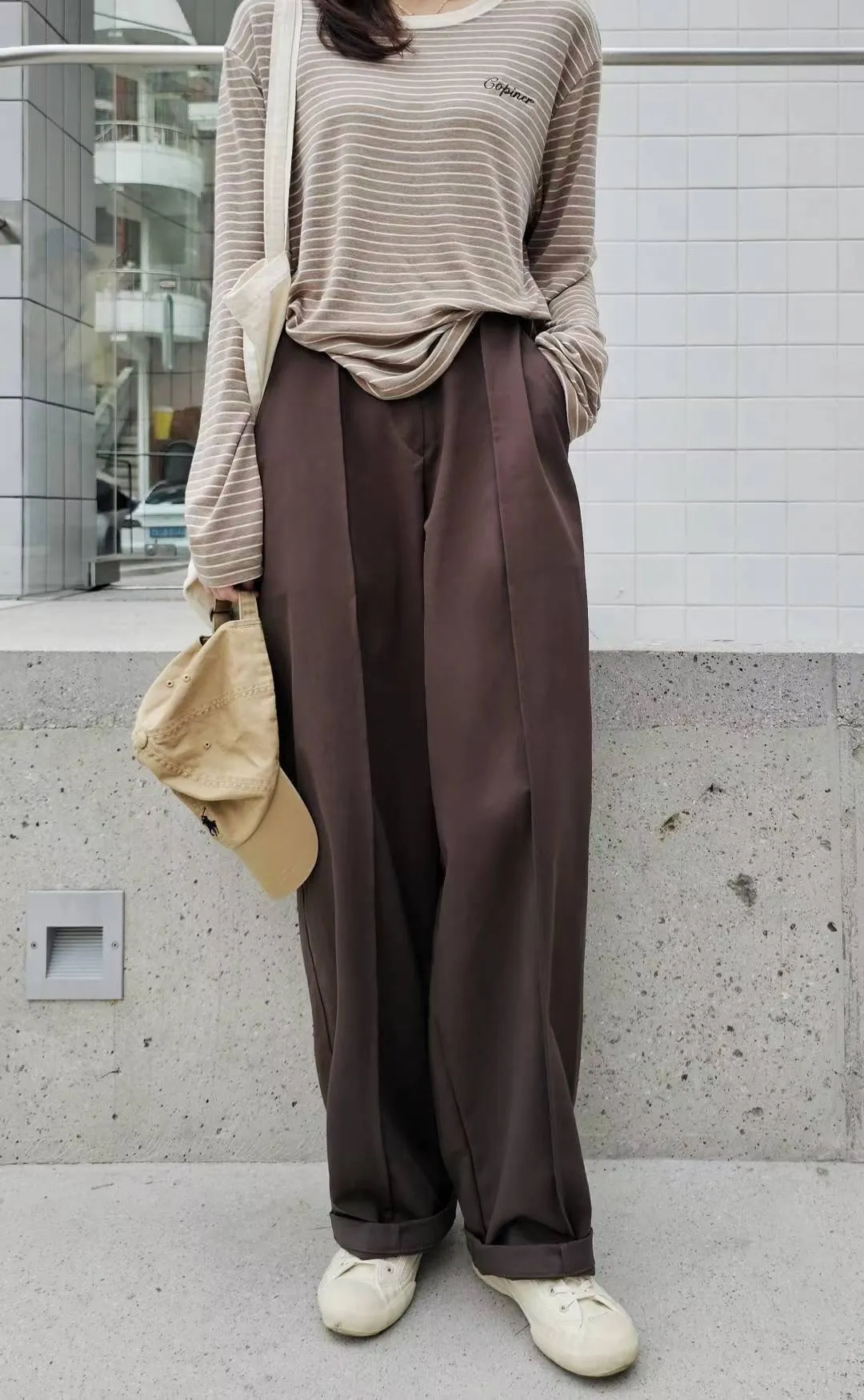 休閒舒適的繭型長褲,稍寬版的鬆弛感滿滿,搭配秋冬T恤或是襯衫都合適🍁🍂