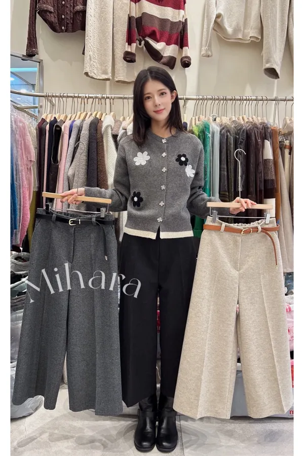 A17 1022Love針織家混羊毛八分直筒寬褲