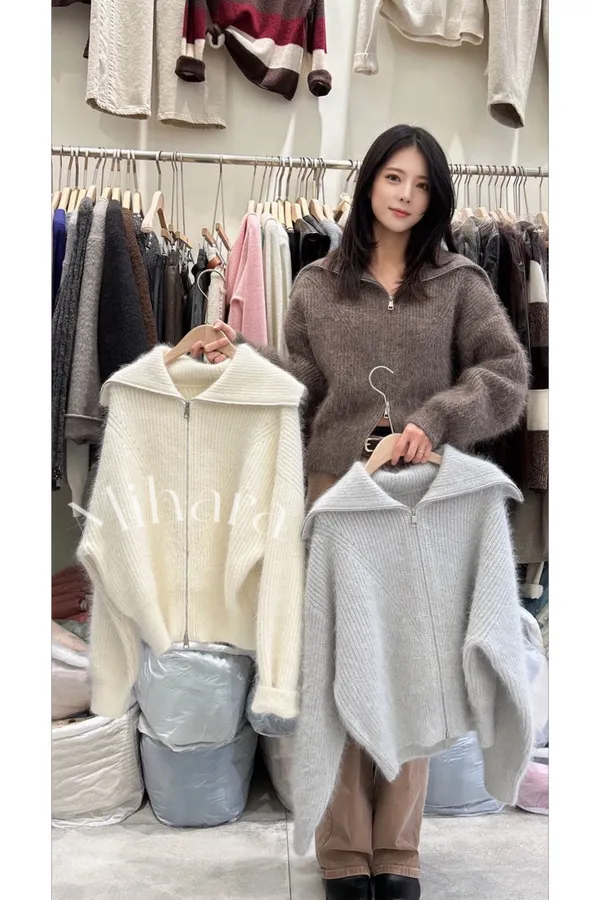 A23 1022Love針織家羊毛混浣熊毛翻領外套
